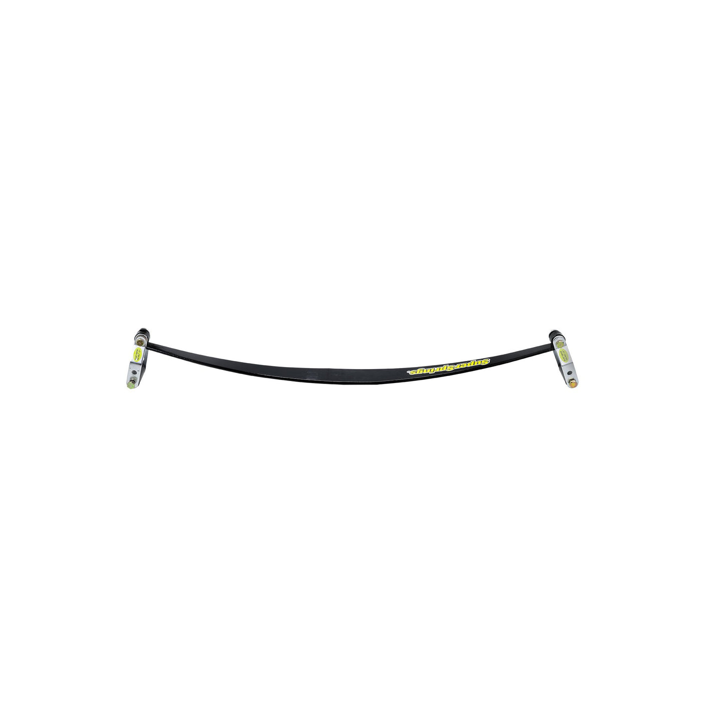 Super Springs are a unique and patented self-adjusting suspension stabilizing system for vehicles with rear leaf springs. They provide extra load support and reduce body roll without compromising the vehicle ride. Working with the factory spring pack, Super Springs automatically activate as needed and their anti-sway feature reduces body roll by 30% providing superior driver control. Super Springs are designed in a variety of lengths and capacities to fit multiple applications of work and recreational trucks, vans and RVs. Their adjustable shackles allow installers to tune the installation to suit their particular needs. How they work: The combination of a tapered blade and pivoting, self-adjusting, dual roller systems enable the Super Springs to work on an as-needed basis. The installed springs are under nominal tension even when the vehicle is unloaded to avoid any rattles. Leaf spring packs elongate under load as they flatten out and the pivoting swing-arm shackle found to the rear of original spring packs allows this extension. The Super Springs dual rollers make the same allowance. This simple roller principal allows them to activate automatically, free of any manual adjustment. Why Super Springs? A suspension system can be thought of as a scale or seesaw. If you desire more of something on one side of the scale (load leveling) you typically concede something (ride comfort) on the opposite side. The goal has always been to maximize more of what drivers desire while minimizing or even negating any offsetting effect. Super Springs' tapered blade and self-adjusting shackles assist in providing the desired load leveling ability without compromising ride quality. This is what makes them unique. Super Springs and are the only self-adjusting fit-it-and-forget-it option on the market that are also leak and rupture proof. Install Super Springs and eliminate the headache of dealing with compressed air.