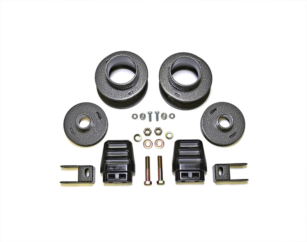 Q: What is included in the TFX SUSPENS Trail FX Suspension Mild Lift Kit?A: The TFX SUSPENS Trail FX Suspension Mild Lift Kit includes strut assembly extensions, tubular upper control arms, front bump stop extensions, rear coil spring spacers, installation hardware, and does not require shock absorbers for installation.