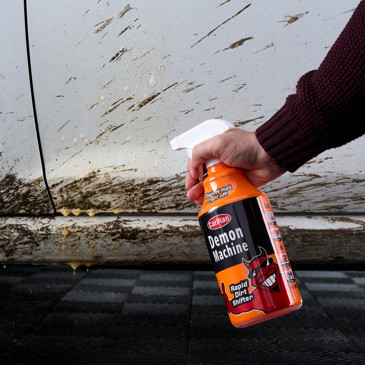 Q: How do I use CarPlan Demon Machine for the best results?A: For optimal results, simply spray CarPlan Demon Machine all over your vehicle before washing. This helps to dissolve grease, road grime, bird lime, and tree sap, making the washing process easier and more effective.