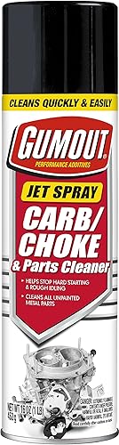 Q: What is Gumout Carb and Choke Cleaner used for?A: Gumout Carb and Choke Cleaner is designed to quickly remove deposits from the carburetor and choke valves, improving engine performance and fuel economy. It effectively cleans gum, varnish, and dirt, ensuring optimal functionality.