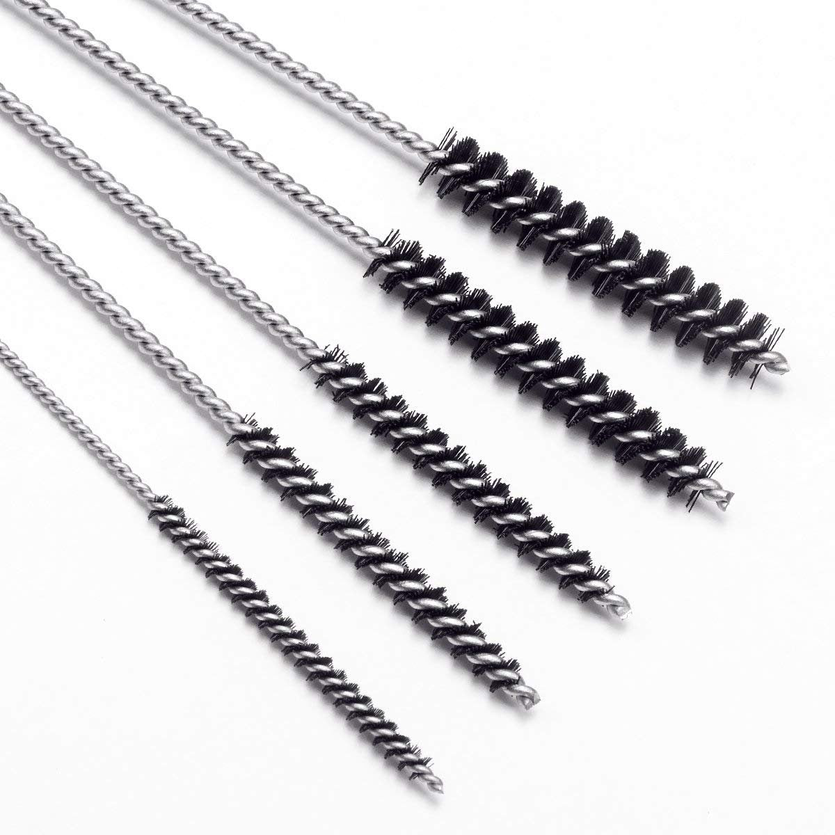 Q: What sizes of cleaning brushes are included in this kit?A: The kit includes stainless steel needle brushes with diameters of 1.1 mm, 1.4 mm, 1.6 mm, 1.8 mm, and 2.1 mm, as well as nylon brushes with diameters of 2 mm, 3 mm, 4 mm, 5 mm, and 7 mm. All brushes have an overall length of 11 cm.