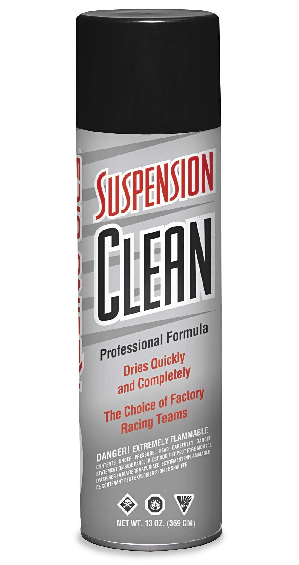 Maxima Suspension Clean is specifically formulated for the Powersports industry professional. Suspension Cleans unique formula quickly and easily cleans suspension internally and externally leaving a dry, residue free surface. Professional formula integrates strong industrial cleaners with a powerful spray. Overspray will not harm O-rings or most seal materials. Displaces moisture. CAUTION: Flammable; Do not spray near open flame. FEATURES: Dries quickly and completely; Leaves no residue; Will not remove most inks or printing; Does not form moisture droplets; No harsh chemical smell.