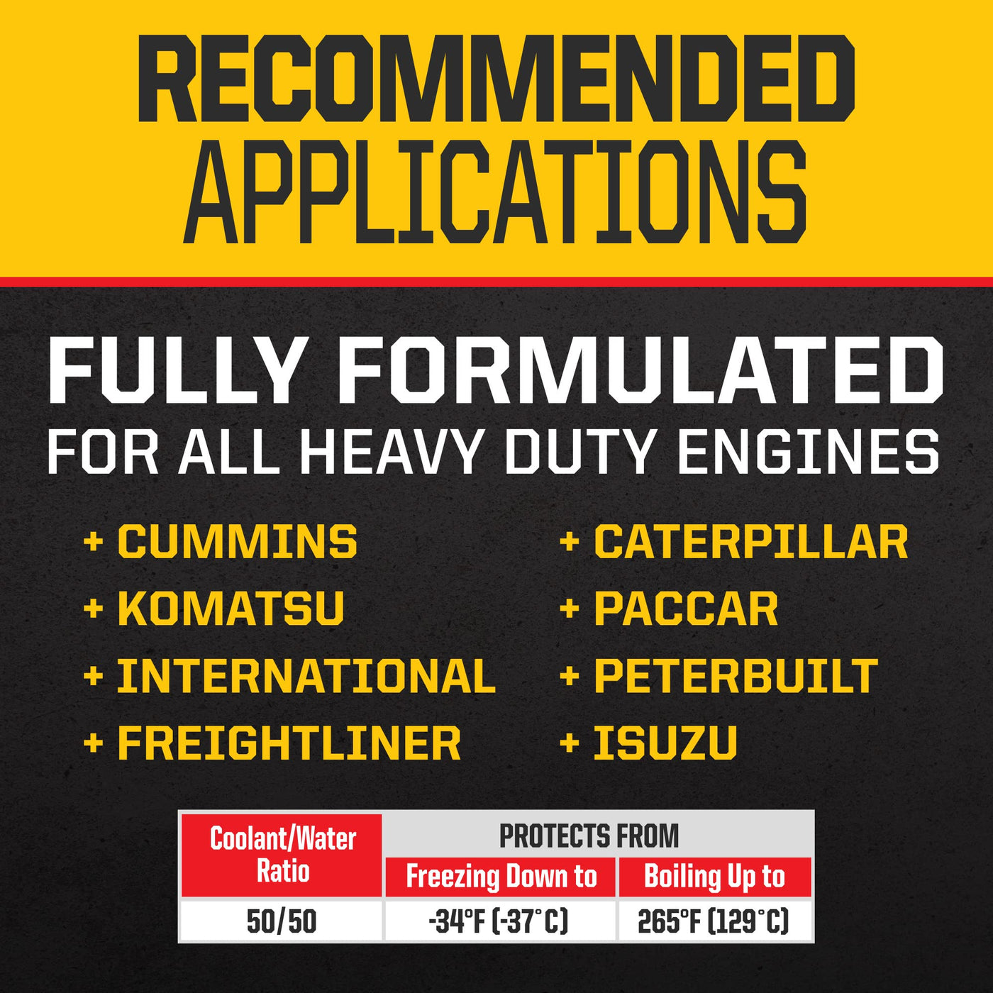 Q: What makes PEAK Final Charge PRO-Series 50/50 Antifreeze and Coolant suitable for heavy duty engines?A: The PEAK Final Charge PRO-Series 50/50 Antifreeze and Coolant is specifically designed for heavy duty engine cooling systems. Its advanced formula provides exceptional protection against liner pitting, water pump cavitation, and metal corrosion, making it ideal for diesel, gasoline, and natural gas engines.
