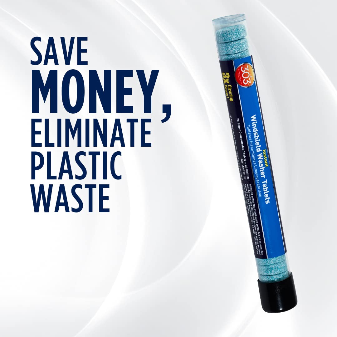 303 Instant Windshield Washer Tablets Are Formulated To Completely Remove Road Film, Dirt And Grime Leaving Windshields Sparkling Clean. Each Super-Concentrated Tablet Makes Up To 1 Gallon Of Windshield Cleaner. Simple, Drop Tablet In Reservoir Of Clean Water Or Add Tablet To A Gallon Of Water. Non-Toxic, Biodegradable, Safe For Rubber And Paint.
