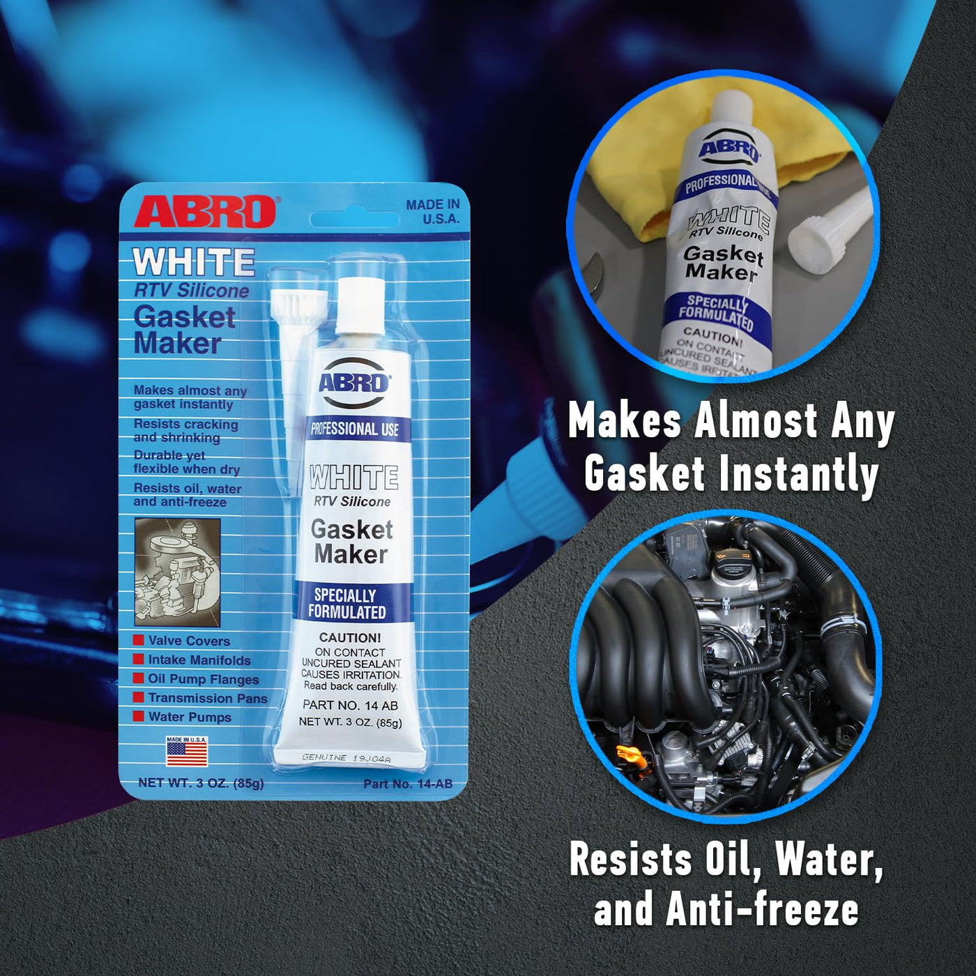 ABRO RTV Silicone Sealant - Industrial Strength, High Temp Gasket Maker - ABRO's RTV Silicone Sealant is the ultimate solution for creating tough, reliable seals in demanding environments. Designed for industrial strength, this high temp RTV silicone gasket maker withstands extreme conditions, including oil, water, anti-freeze, and transmission fluid exposure. Perfect for heavy-duty applications, it offers unmatched durability for professionals and DIYers alike. Once cured, ABROs silicone sealant forms a flexible, resilient seal that resists cracking, shrinking, and migration caused by thermal cycling, vibrations, and contraction. Its fast-curing formula ensures quick, easy application, delivering leak-proof gaskets in an instant. Say goodbye to most traditional cut gaskets with this multifunctional RTV silicone gasket maker, ideal for sealing valve covers, intake manifolds, oil pump flanges, water pumps, and more. With a temperature resistance of up to 500F (260C), ABRO's high temp RTV silicone sealant is built to handle high-heat environments, making it an essential tool for automotive, industrial, and general repair applications. Whether youre working on engines or industrial machinery, trust ABRO for a reliable seal every time. Choose ABRO RTV Silicone Sealant for unbeatable strength, flexibility, and versatility-your go-to gasket maker for superior performance under pressure.