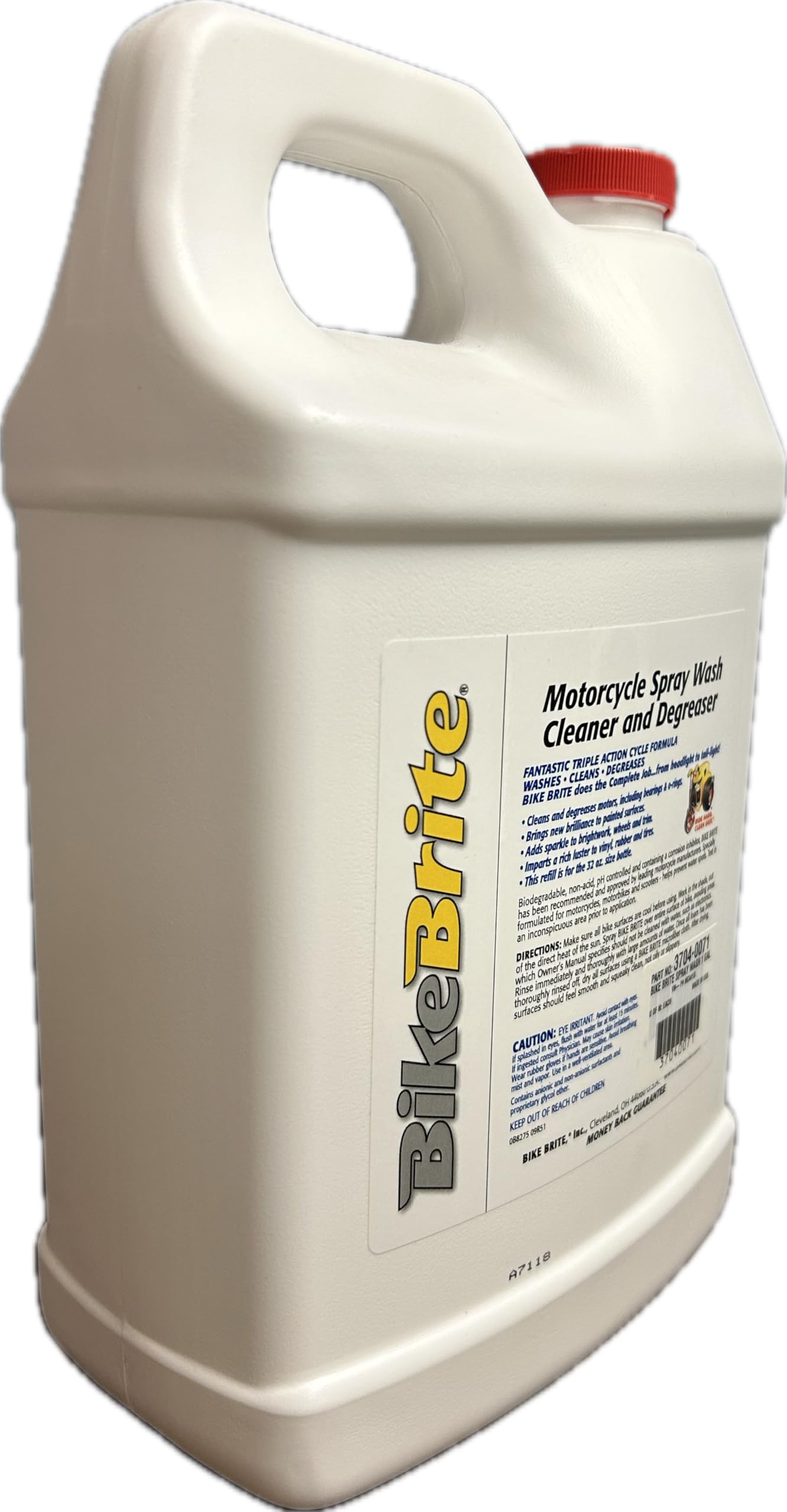 Bike Brites Fantastic Triple Action Cycle Formula Washes, Cleans And Degreases From Headlight To Taillight! Specially Formulated For Motorcycles, Motorbikes And Scooters, Bike Brite Has Been Recommended And Approved By Leading Motorcycle Manufacturers. Biodegradable, Non-Acidic, Ph Controlled And Containing Corrosion Inhibitors. Special Brighteners Help Keep Rust And Grease From Forming. Bike Brite Cleans And Degreases Motors Including Bearings And O Rings, Brings New Brilliance To Painted Surfaces, Adds Sparkle To Bright Work, Wheels And Trim, Imparts And Rich Luster To Rubber And Tires, And Helps Prevent Water Spots. Just Spray It On And Rinse It Off. What Could Be Easier? Designed To Be Used For Refilling Our 32Oz. Ergonomic Bottle (Stock# Mc44) With Super Foaming Action Sprayer. Can Be Used On All Vehicles. Made In The U.S.A.