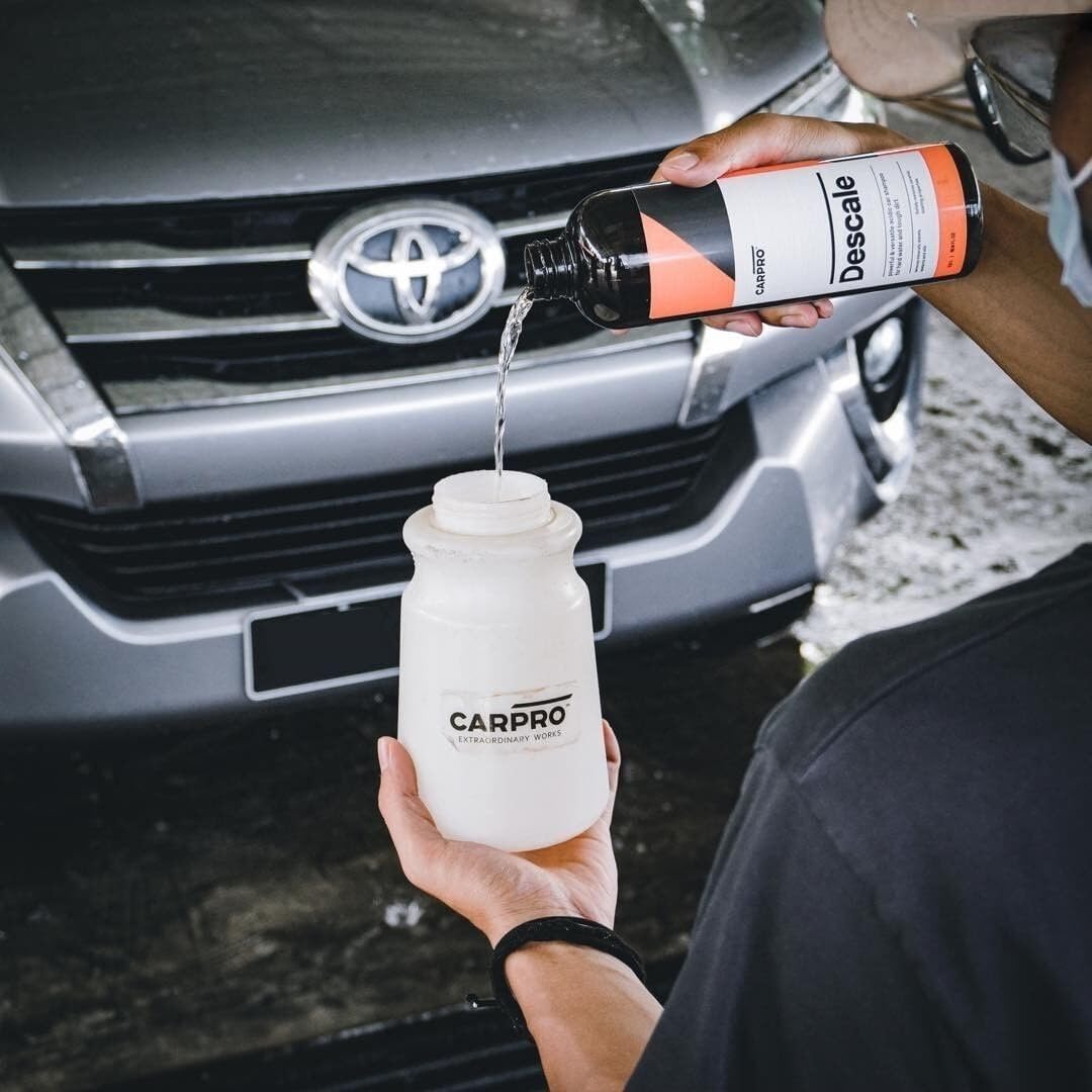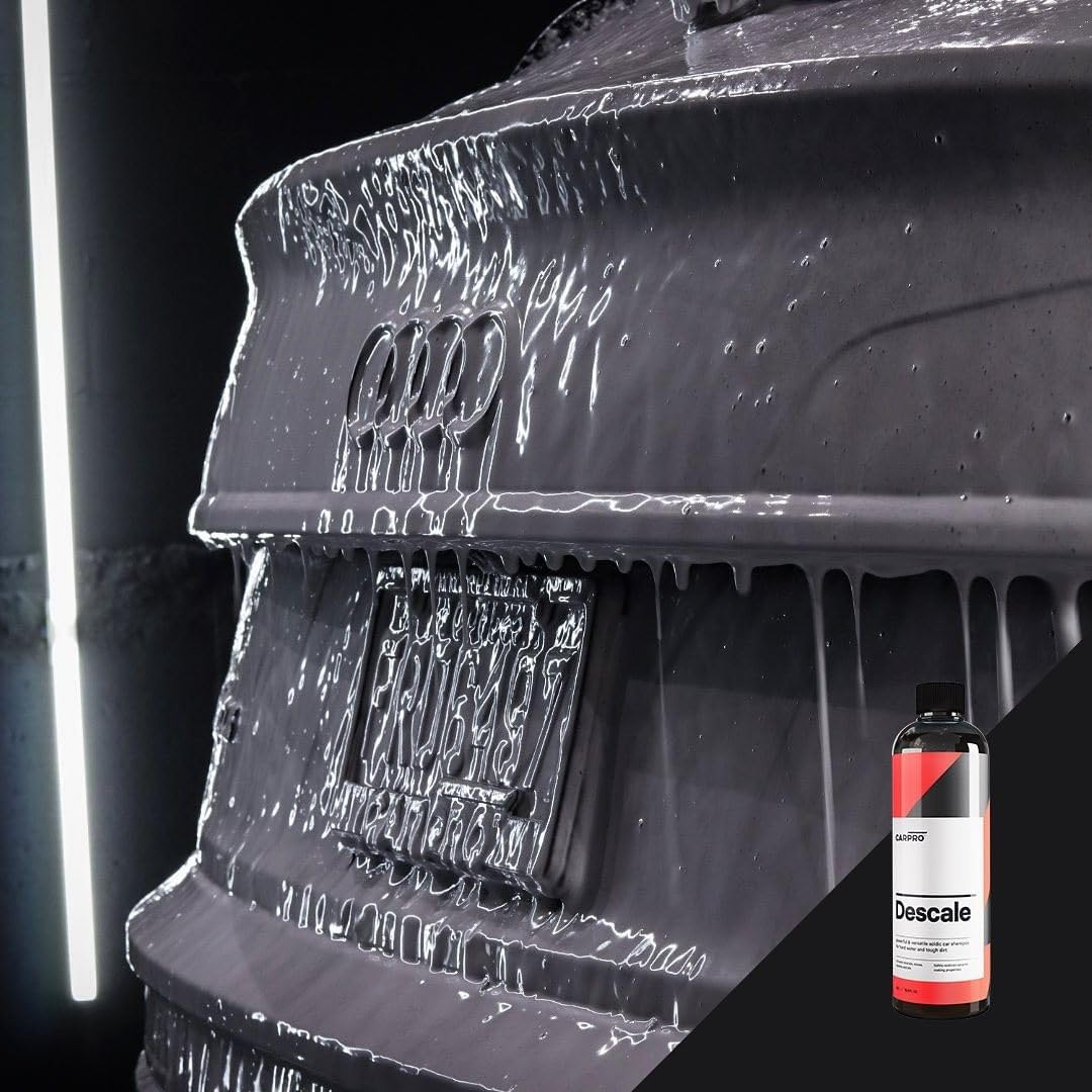 Q: When should I use CARPRO Descale in my car detailing routine?A: Use CARPRO Descale when detailing vehicles that are subjected to hard water, have lost gloss or hydrophobic properties, or are neglected. It can be used as a first step in a full detailing process or for regular maintenance washes.