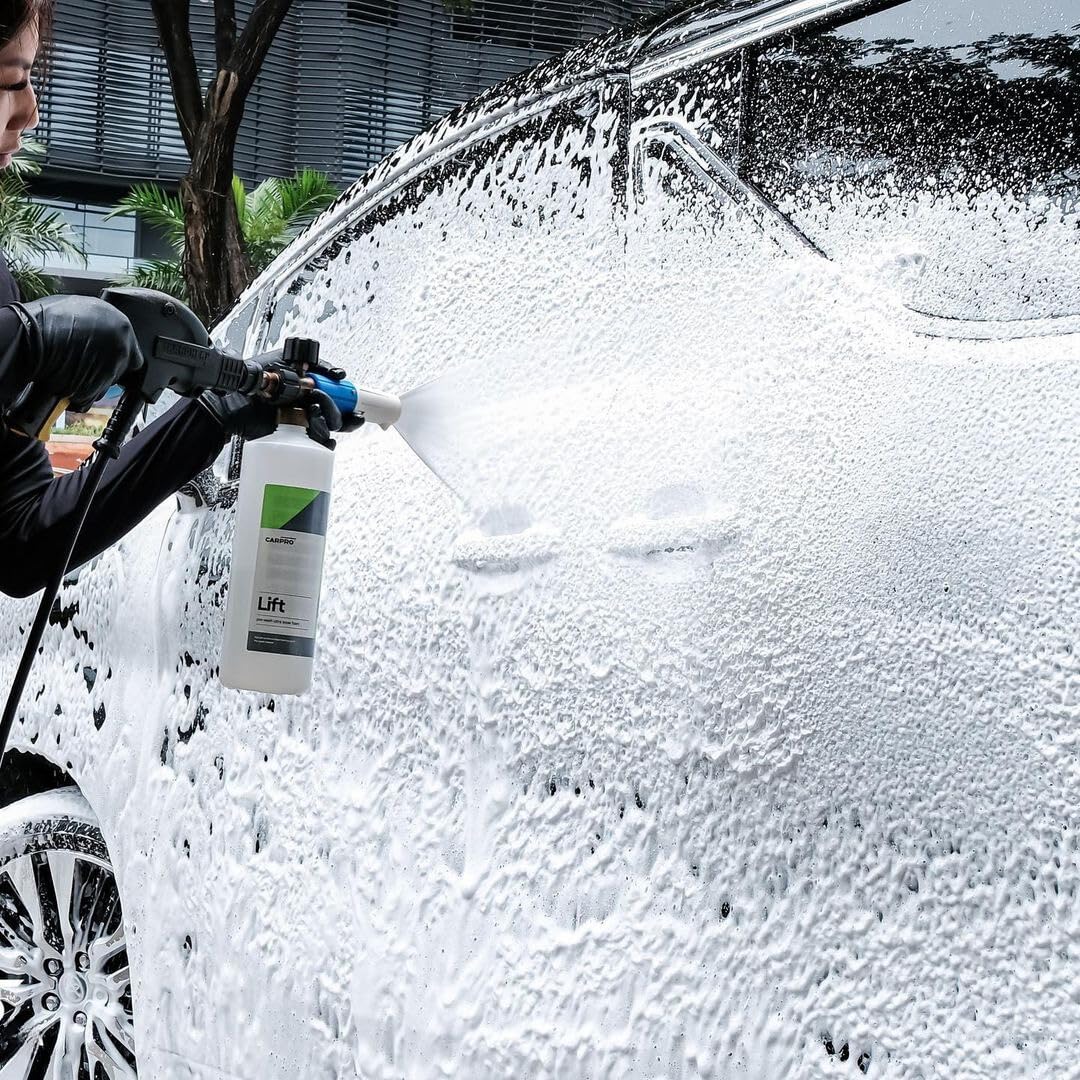 Q: What is CARPRO Lift and how does it work?A: CARPRO Lift is a highly concentrated pre-wash foaming agent designed to dissolve and lift away dirt and grime in a completely touchless manner. It utilizes 12pH alkyl cleaning ingredients that are both strong and gentle. When applied with a foam lance, Lift creates a thick foam that dwells on the surface, encouraging the cleaning agents to activate and effectively remove contaminants.