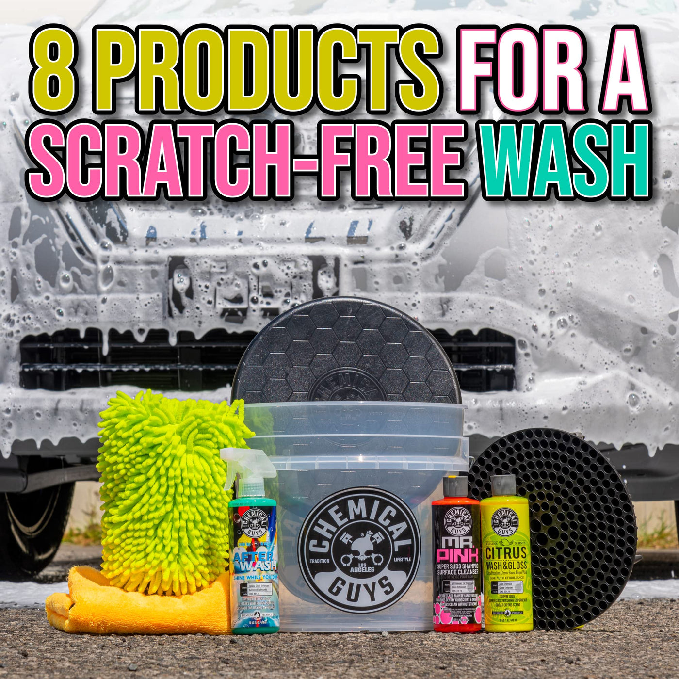 Q: How do I prevent scratches while washing my car with this kit?A: To prevent scratches, use the included Chenille microfiber wash mitt, which is designed to be scratch-free. Additionally, the Dirt Trap bucket insert helps separate dirt and debris from the wash water, reducing the chances of rubbing dirt back onto your car's surface.