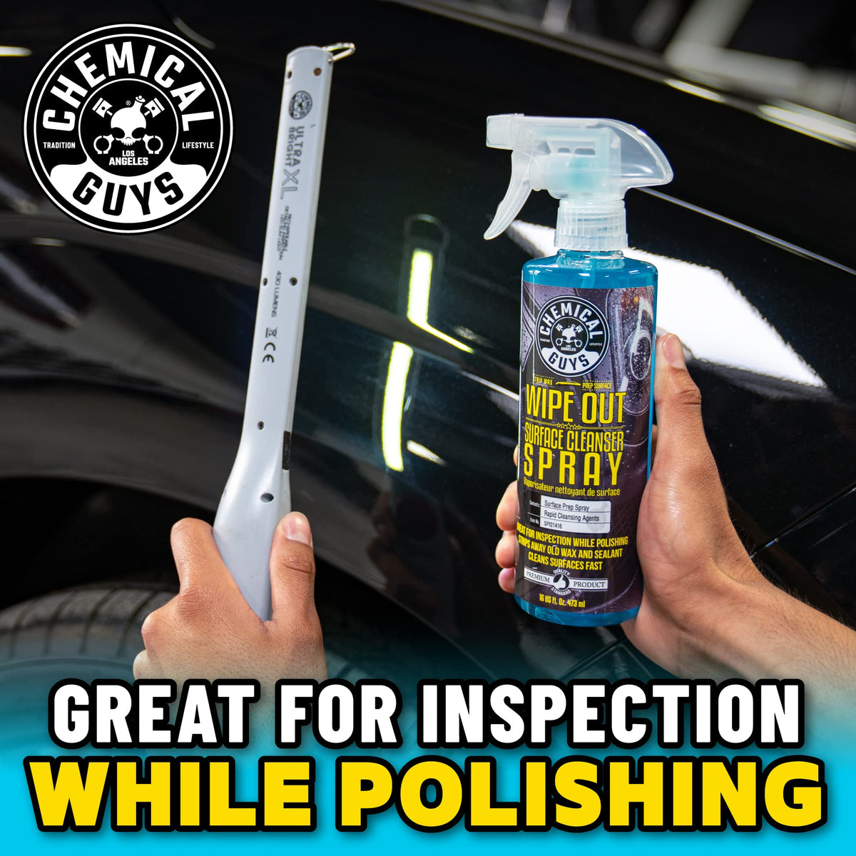 Chemical Guys Wipe-Out Is The Surface Prep Spray That Strips Old Layers Of Glaze, Sealant, And Wax Proper Surface Prep Is A Critical Step In Polishing And Paint Correction, And To Guarantee Maximum Adhesion Of Fresh Layers Of Vehicle Coatings, Sealant, And Wax Strip Old Layers Of Grease, Oil, And Polish With Wipe-Out To Uncover The Totally-Pristine Surface Check Polishing Work To Ensure No Swirl Or Scratch Was Hiding Underneath Polish Residue Or Old Wax Help Your Coatings, Glaze, Sealant, And Wax Bond Stronger, Look Better, And Last Longer By Properly Stripping Away Old Layers With Wipe-Out While Polishing Away Swirls And Scratches, Used Polish Can Fill Lighter Defects And Blemishes, Making Them Harder To See And Repair Use Wipe-Out To Remove Spent Polish For Proper Inspection Of Paintwork For Satisfactory Results The Old Detailers Trick Used Ipa (Isopropyl Alcohol) To Remove Polish Residue For Painted Panels While The Alcohol And Water Mixture Dissolved Any Residue, It Was Not Slick Enough To Prevent Fresh Swirls And Scratches Caused By Light Airborne Debris Or Rough Microfiber Towels Wipe-Out Is Formulated With Special Lubricating And Anti-Static Agents To Help Prevent Scratches While Wiping Dust Or Polish Residue Wipe-Out Helps Prevent Polishing Residue And Dust From Sticking To Freshly-Finished Panels For Reduced Prep Time After Polishing And Before A Coat Of Wax Prepare Your Car For The Best Look And Protection With Chemical Guys Wipe-Out Surface Prep Spray