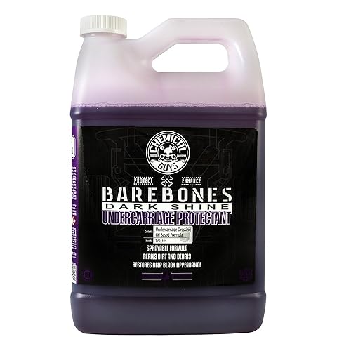 Q: What is the size of the Chemical Guys Bare Bones bottle?A: Chemical Guys Bare Bones comes in a 128 fl oz (1 Gallon) bottle, providing ample product for multiple applications on your vehicle's undercarriage, trim, and tires.