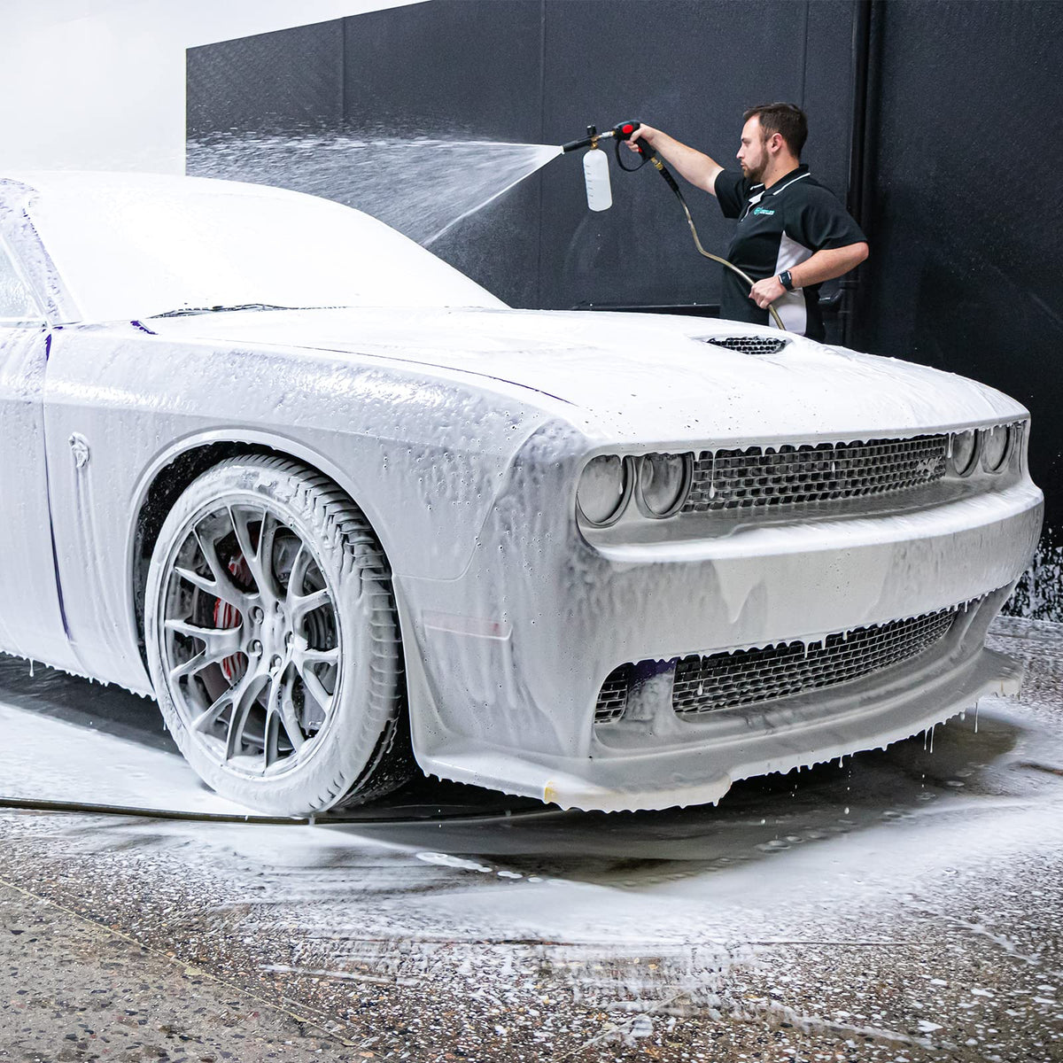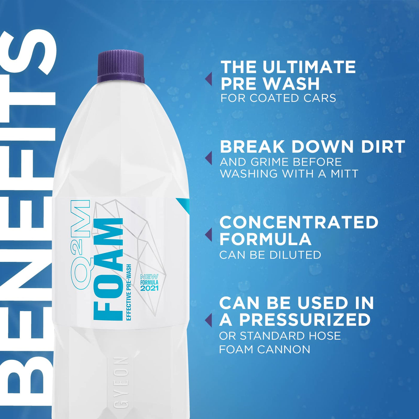 Q: What is Gyeon Foam and how does it work?A: Gyeon Foam is a thick pre-wash foam designed for use with a pressure washer foam cannon or garden hose foam sprayer. It effectively removes dirt from your vehicle's surface without damaging existing coatings or waxes. By applying the foam, it clings to dirty areas, dissolving grime and reducing the chance of scratches during the wash process.