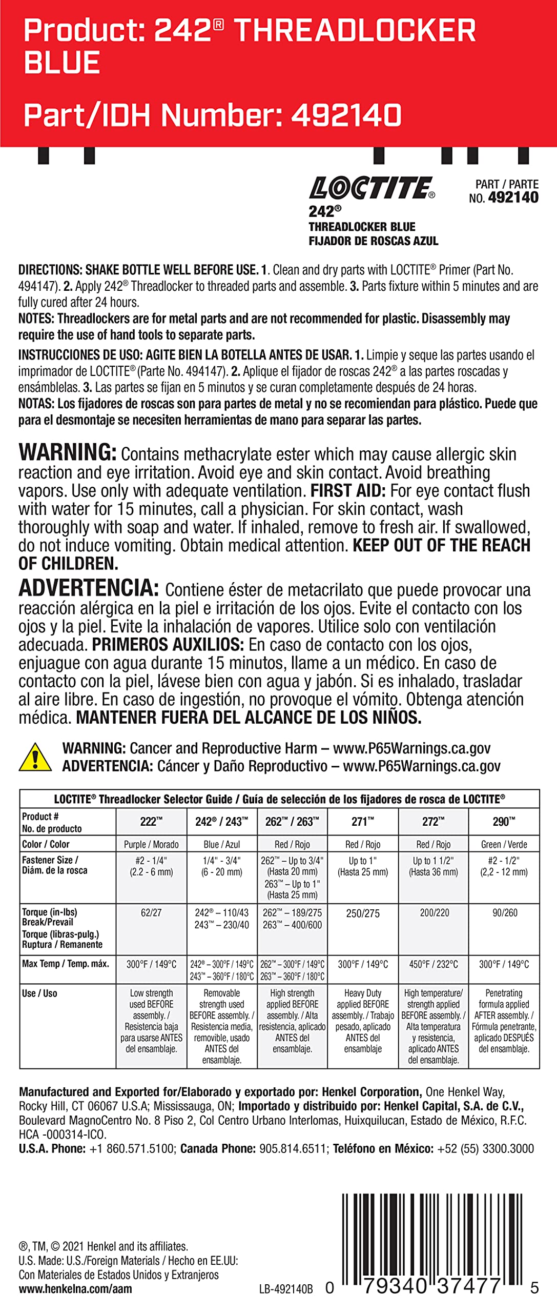 LOCTITE 242 Threadlocker for Automotive: High-Temp, Medium-Strength, Anaerobic, All Purpose TYPICAL APPLICATIONS, Works on all M