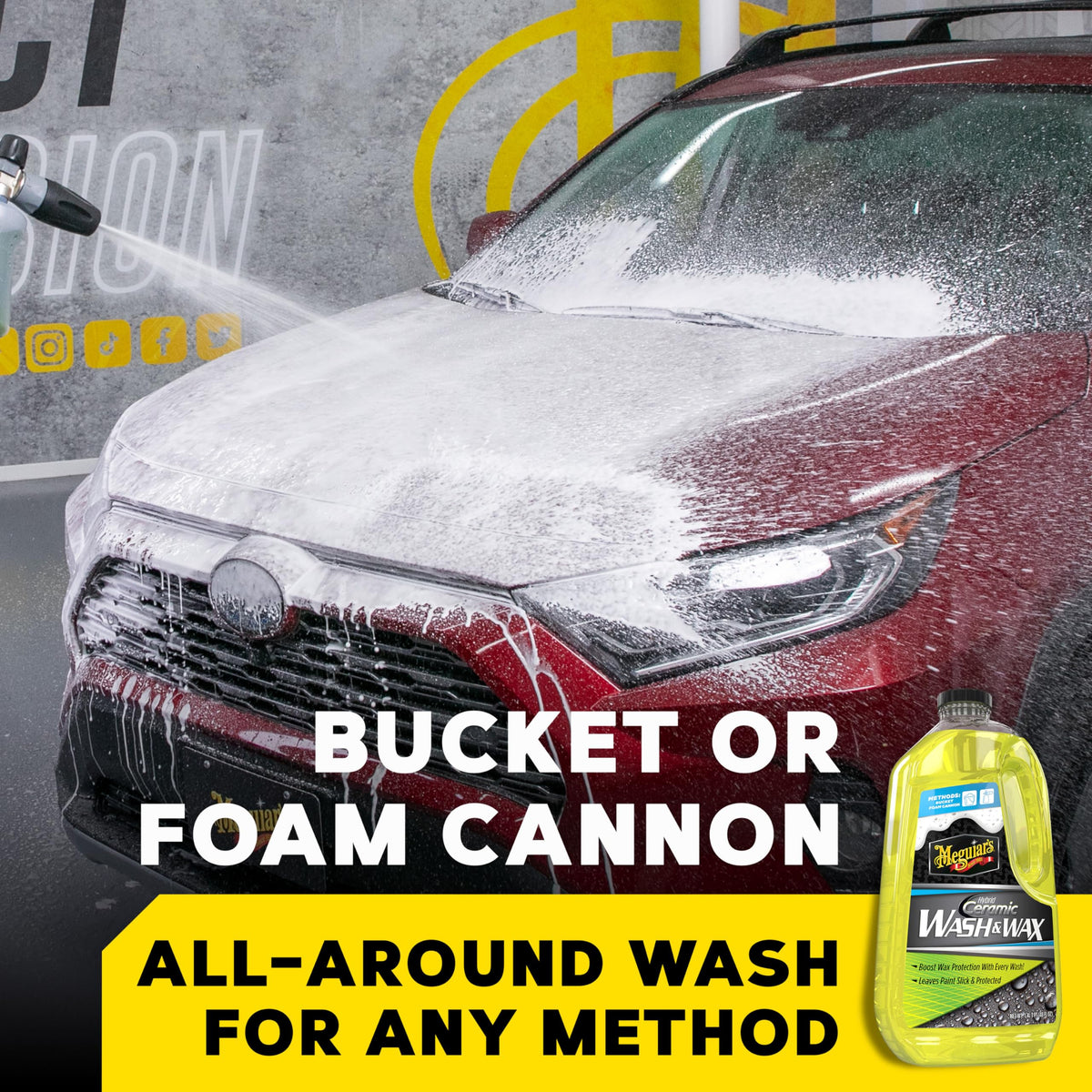 Q: Can I use Meguiar's Hybrid Ceramic Wash & Wax with a foam cannon?A: Yes, you can use Meguiar's Hybrid Ceramic Wash & Wax with a foam cannon. For optimal results, it is recommended to mix the product at a ratio of 6:1, which means 6 parts water to 1 part of the wash and wax solution.