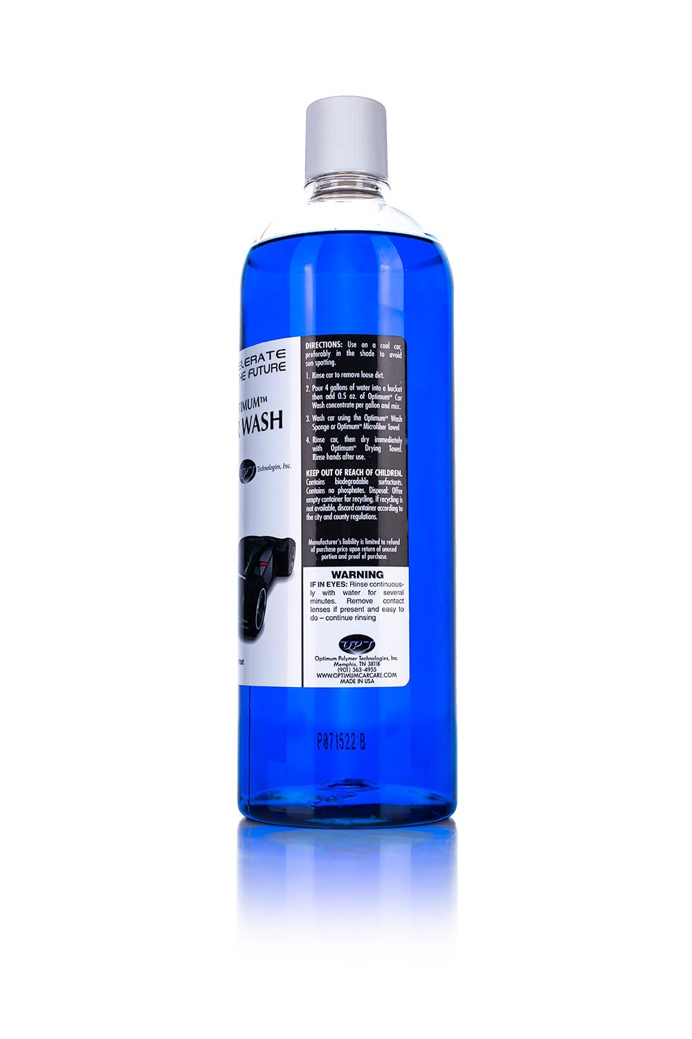 Q: How much Optimum Car Wash do I need to use for a wash?A: For an effective wash, use only 0.5 oz. of Optimum Car Wash per gallon of water, which translates to a 1:256 dilution ratio. This concentrated formula creates a rich foam that cleans thoroughly without wasting product.