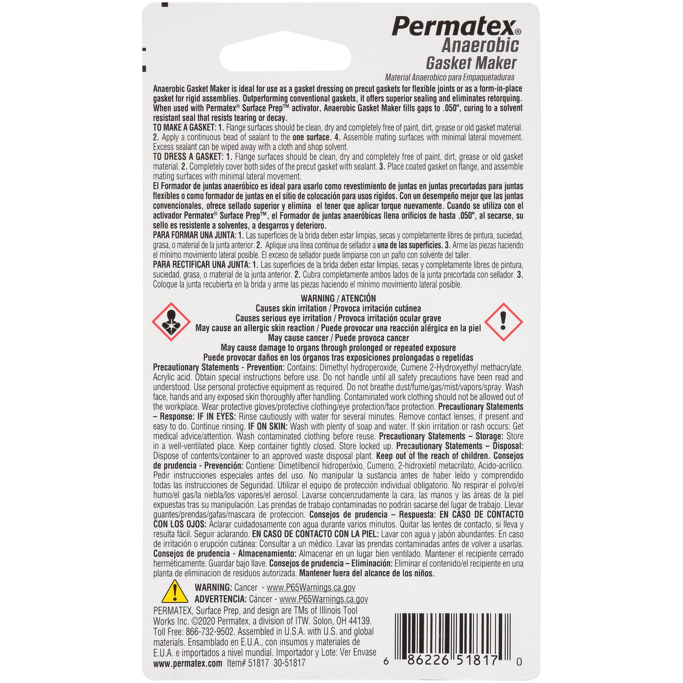 Permatex Anaerobic Gasket Maker is designed primarily for use on aluminum, iron, and steel flanged mating surfaces. This non-corrosive gasketing material is ideal for on-the-spot and emergency repairs, or when a conventional gasket is unavailable. Fills gaps up to .015 inches and cures to a solvent-resistant seal that will not tear or decay during service. Parts disassemble easily even after extended service and old gasket material can be removed in minutes with a simple putty knife. Suggested applications include water pumps, thermostat housings, transmission pans, transmission case covers, transaxle casings, and o-ring replacement.
