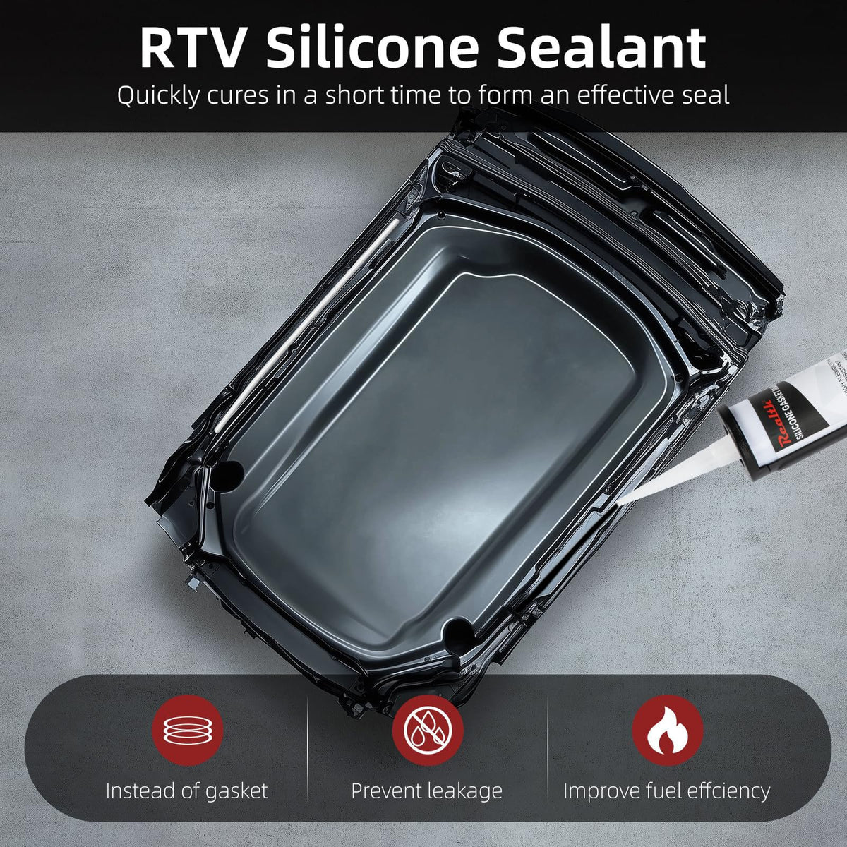 Realth Black RTV Sealant & Gasket Maker is a premium-quality, high-performance sealant designed to provide a leak-proof, durable seal for a wide range of automotive applications. Ideal for sealing engine components, it is especially effective for applications requiring oil resistance, such as engine gaskets, differential covers, oil pans, and more. Key Features: -. Maximum Oil Resistance: Specifically formulated for extreme oil resistance, making it perfect for sealing high-performance automotive parts. -. Versatile Use: Ideal for creating gaskets, sealing oil pans, valve covers, and differential covers, and can also be used on transfer cases and vacuum chambers. -. Excellent Adhesion & Durability: Creates a strong, long-lasting bond that resists cracking, shrinking, and leaking, even under extreme conditions. -. Easy Application: Comes in a convenient caulking tube for easy application, allowing precise control during use. -. OEM / Factory Approved: Trusted by professionals and DIY enthusiasts alike for automotive repairs and builds. -. Temperature Range: Withstands extreme temperatures from -65F to 500F, making it suitable for both high and low-temperature environments. -. Fast Curing: Cures rapidly to form a tough, flexible seal that ensures long-term reliability. Package Includes: 6 Tube (13 Fl. Oz.)