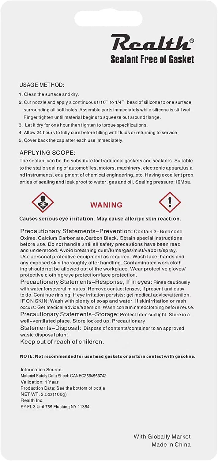 Features: - Crafted From High-Quality Silicone Rubber, These Gaskets Are Designed To Meet The Demands Of Various Applications. - It Will Not Shrink, Drip, Run, Leak Or Crack, Resist Any Weather. - Make Sure That All Surfaces Are Clean And Grease-Free. - It'S Extremely Handy For Any Small Fixes. - Letting It Cure For 24 Hours And You Won'T Have An Issue. - Great For Minor Exhaust Leaks Under Clamps. - The Gasket Is Subject To High Compression And Excessive Heat. - Great Stuff To Have When Rebuilding Transmissions Or Transfer Cases. - Works Great For Putting The Outboard Motor Back Together After A Rebuild. - This Is A Great Choice For A Sealant Between Two Metal Flanges That Are Both Nice And Flat. - Engineered With Precision, Our Silicone Gaskets Are Built To Withstand Regular Wear And Tear. - The Flexibility And Elasticity Of These Gaskets Allow For Easy Installation And Adaptability To Irregular Surfaces. - Resistant To A Wide Range Of Chemicals And Fluids. Package Including : - 3 X Black Silicone Gasket Maker.