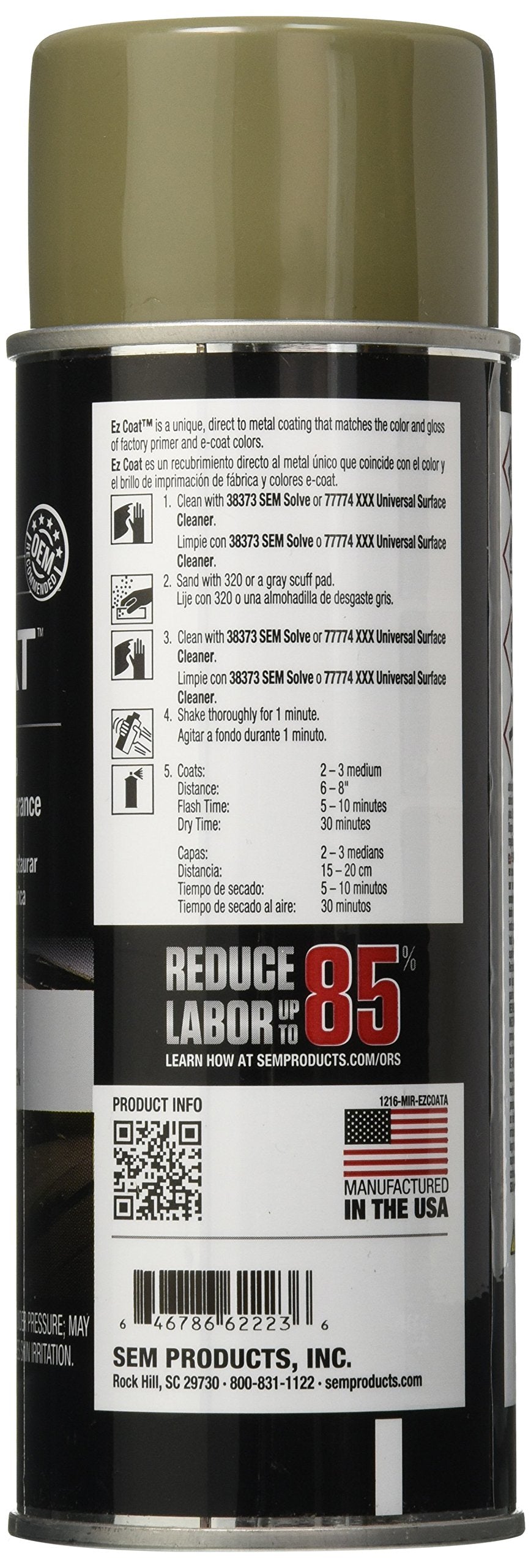 Q: What surfaces can I use SEM 62223 Olive Green Ez Coat on?A: SEM 62223 Olive Green Ez Coat is designed for direct application on metal surfaces. It effectively matches the color and gloss of factory primer and e-coat finishes, making it ideal for automotive and industrial applications.