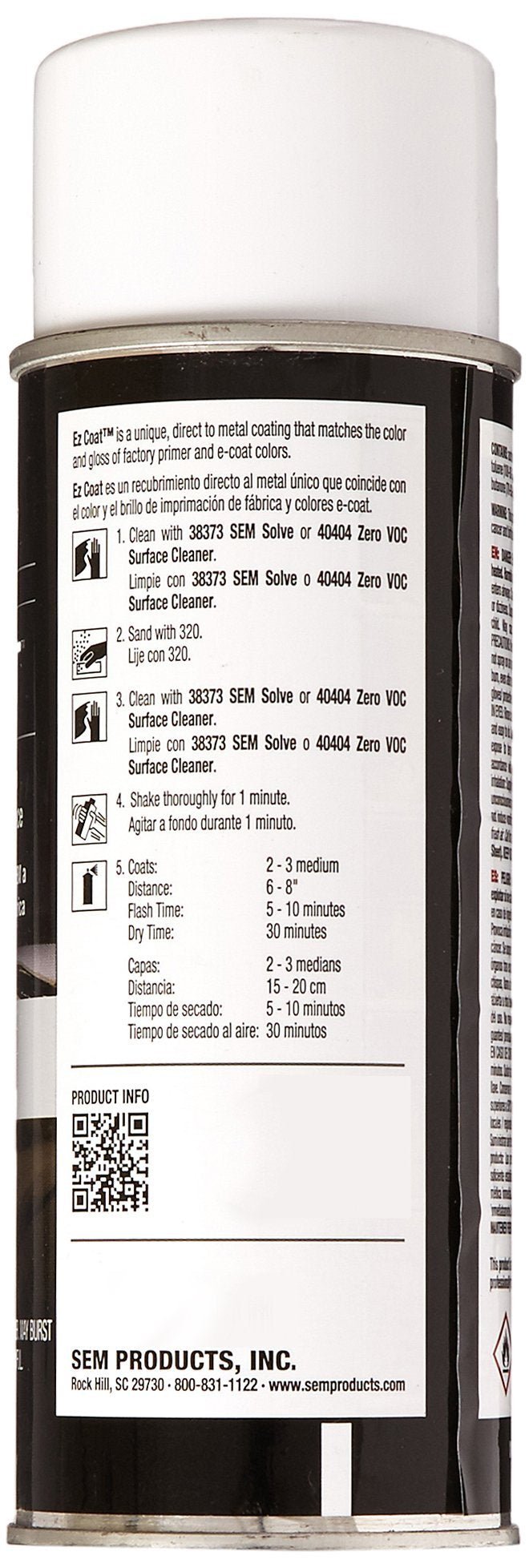 Q: How do I apply the SEM Ez Coat spray can?A: To apply SEM Ez Coat, ensure the surface is clean and free of rust or debris. Shake the can well, then spray from a distance of 10-12 inches. Apply in light, even coats, allowing each coat to dry before applying additional layers for optimal coverage.