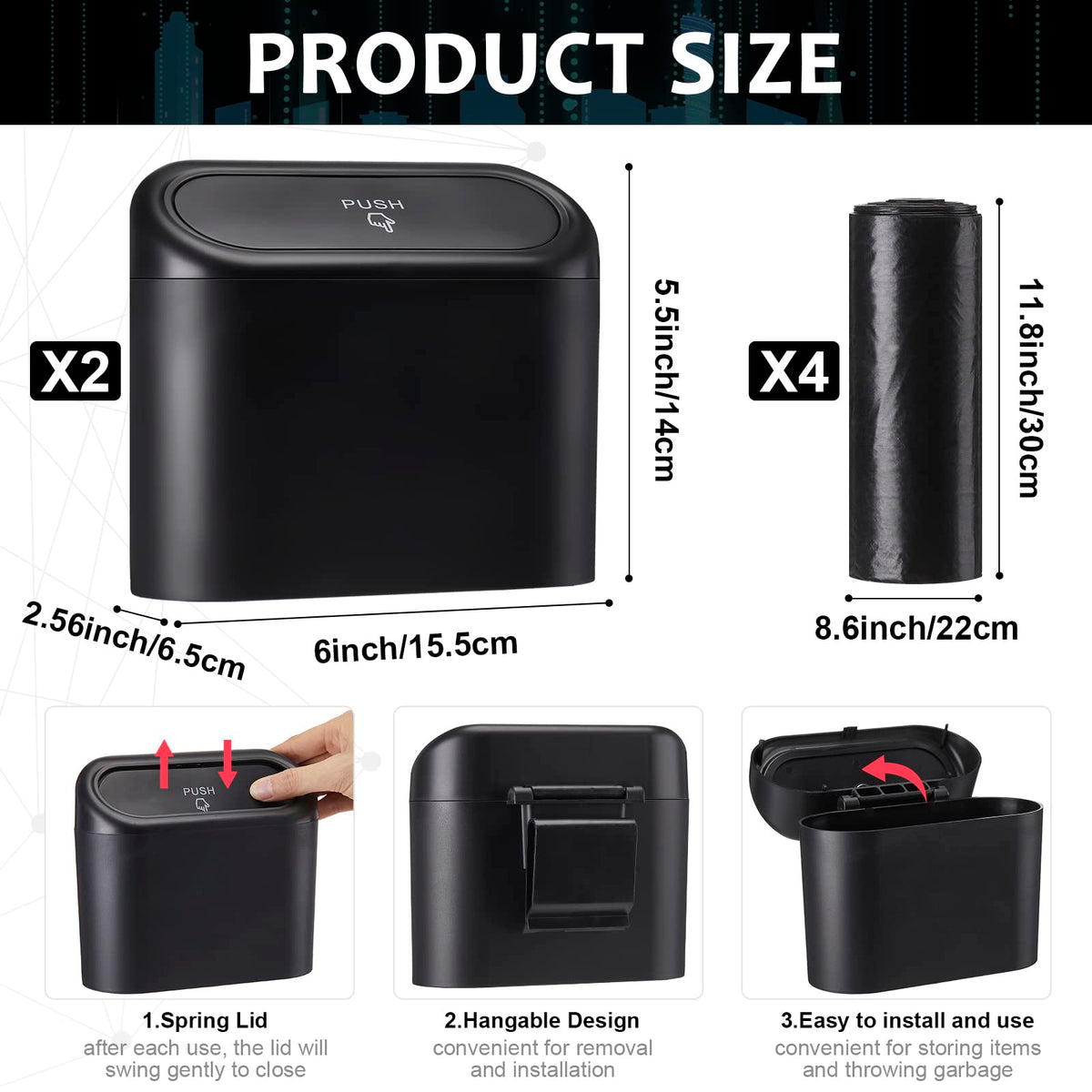 2 Pcs Car Garbage Can, Car Trash Can Bin with Lid and 60 Trash Bags Leakproof Small Trashcan Bin Dustbin Driver Organizer Access