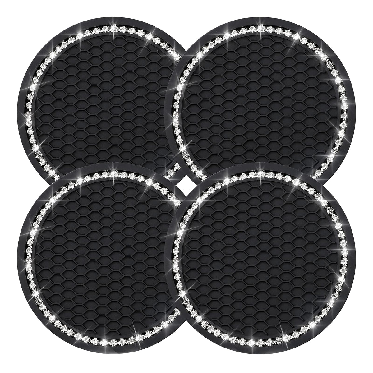 4Pcs Bling Coasters, Crystal Car Cup Coaster, Rhinestone Universal Vehicle Anti Slip Coaster, Suitable For Most Car Interior, Bl
