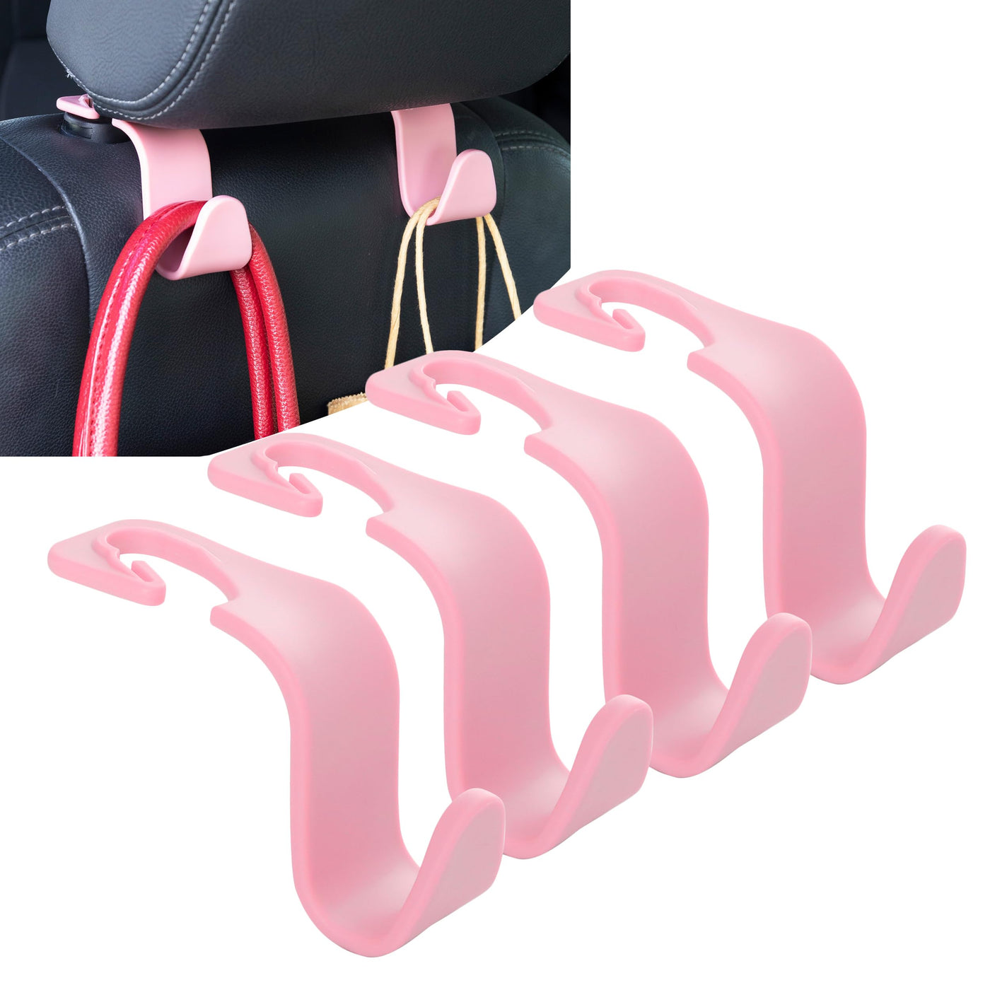 Amooca Car Seat Headrest Hook 4 Pack Hanger Storage Organizer Universal for Handbag Purse Coat Universal fit Vehicle Car Pink with Clip