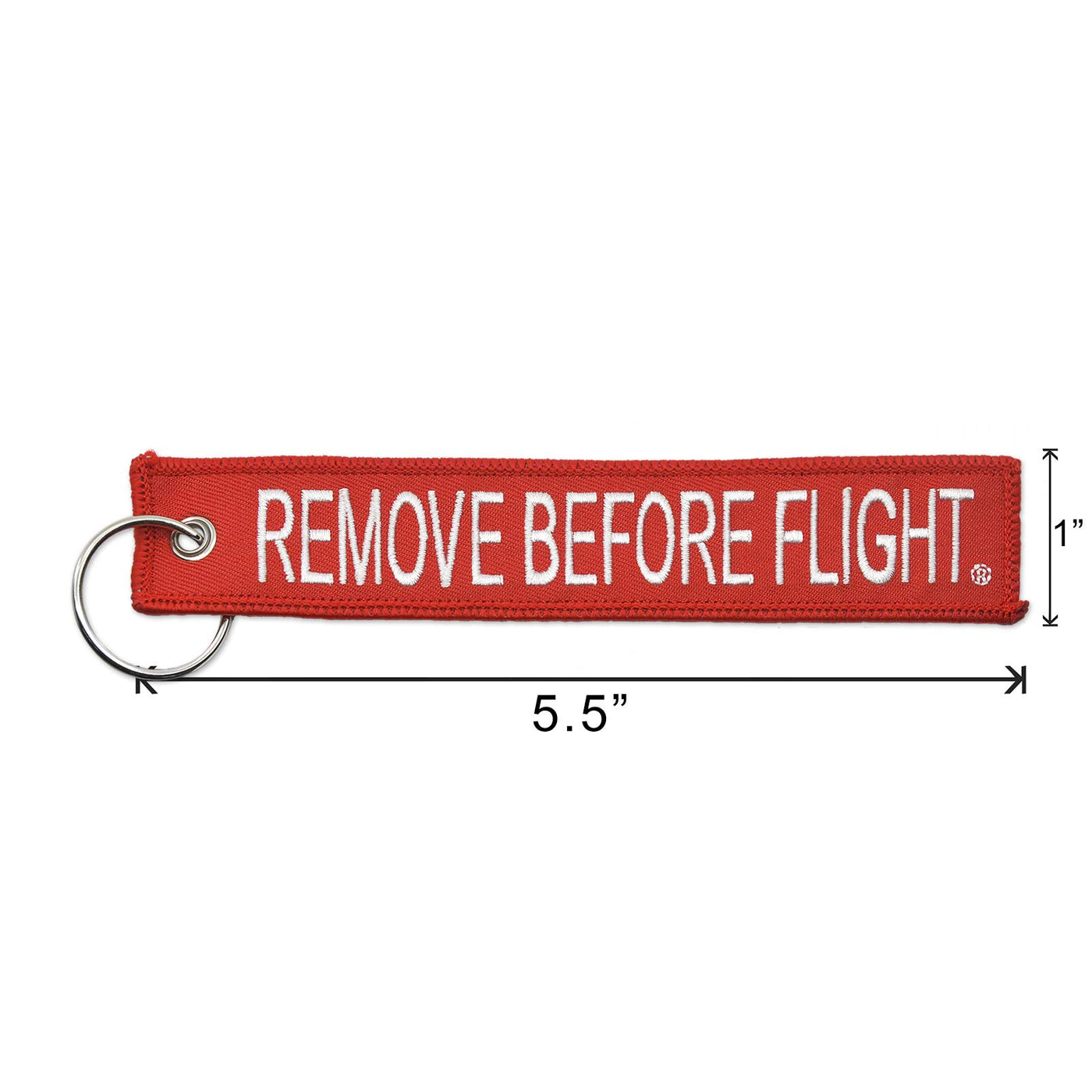 Keep track of your keys with these vibrant red Remove Before Flight key chains! Our key chains are beautifully embroidered and double sided, with reinforced merrowed borders to ensure long lasting durability. They are also perfect for the keys to your car, motorcycle or wherever you like! Measuring 5.5'' x 1'', these key chains are easy to grab and make your keys easy to find!