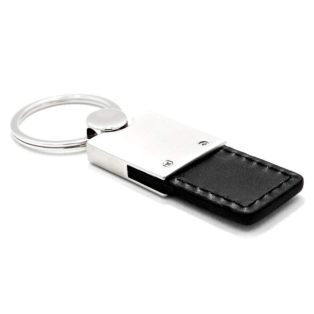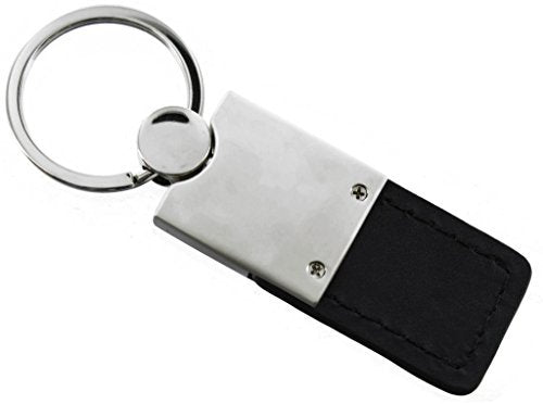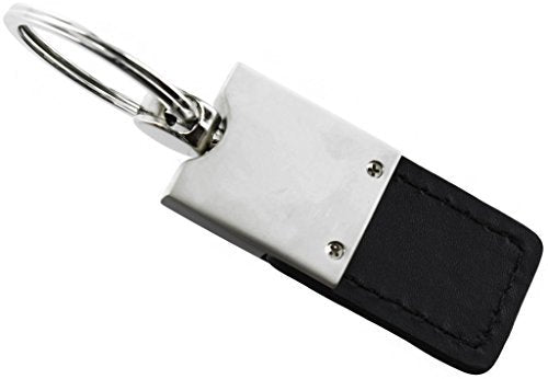 Genuine leather and a metal rectangular key fob with a luxurious look and feel. Vertical design and layout. Available in a variety of colors. Precision laser etched logo. Includes a black gift box