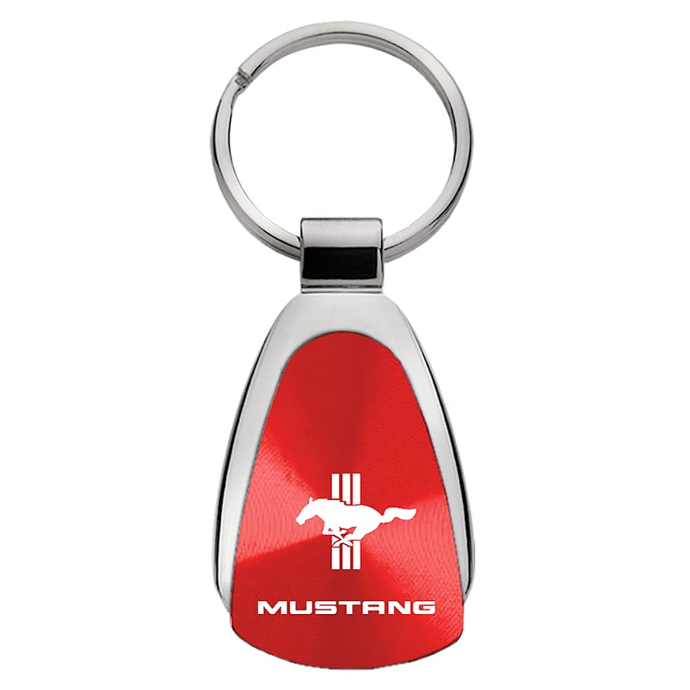 Au-TOMOTIVE GOLD, INC. Officially Licensed Red Teardrop Key Chain for Ford Mustang Tri-Bar