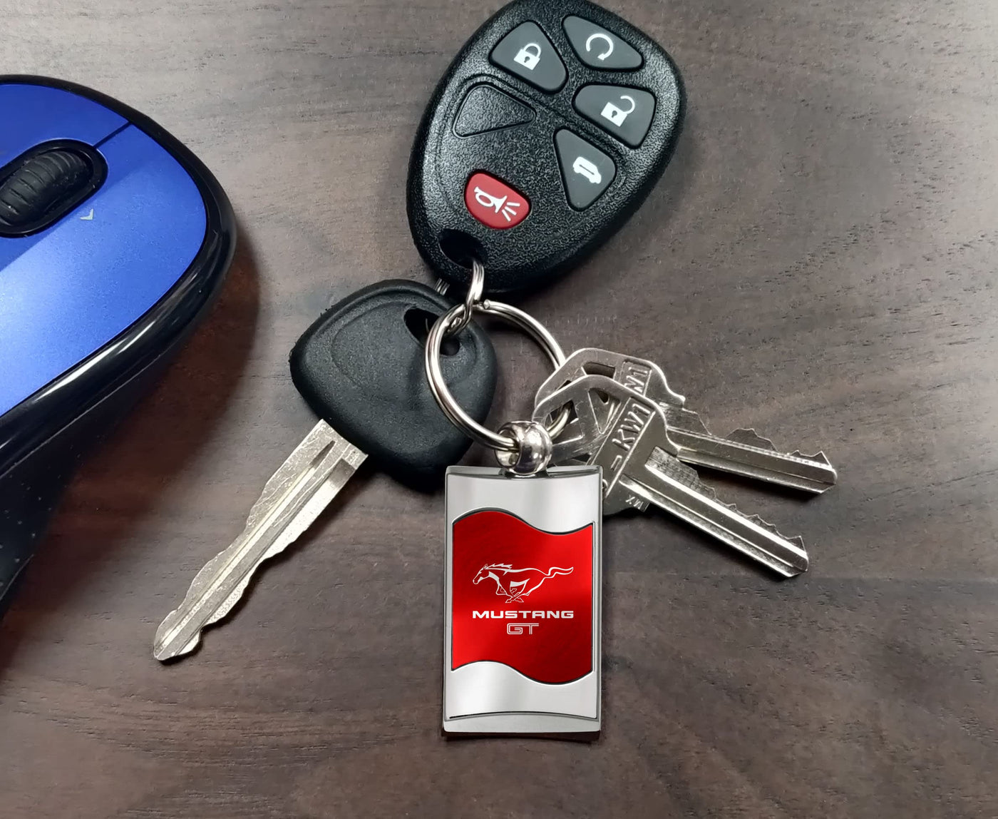 Au-TOMOTIVE GOLD Rectangular Wave Key Fob for Mustang GT (Red)