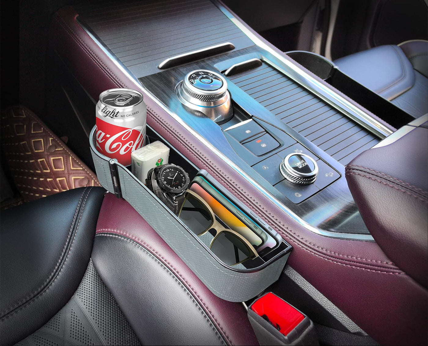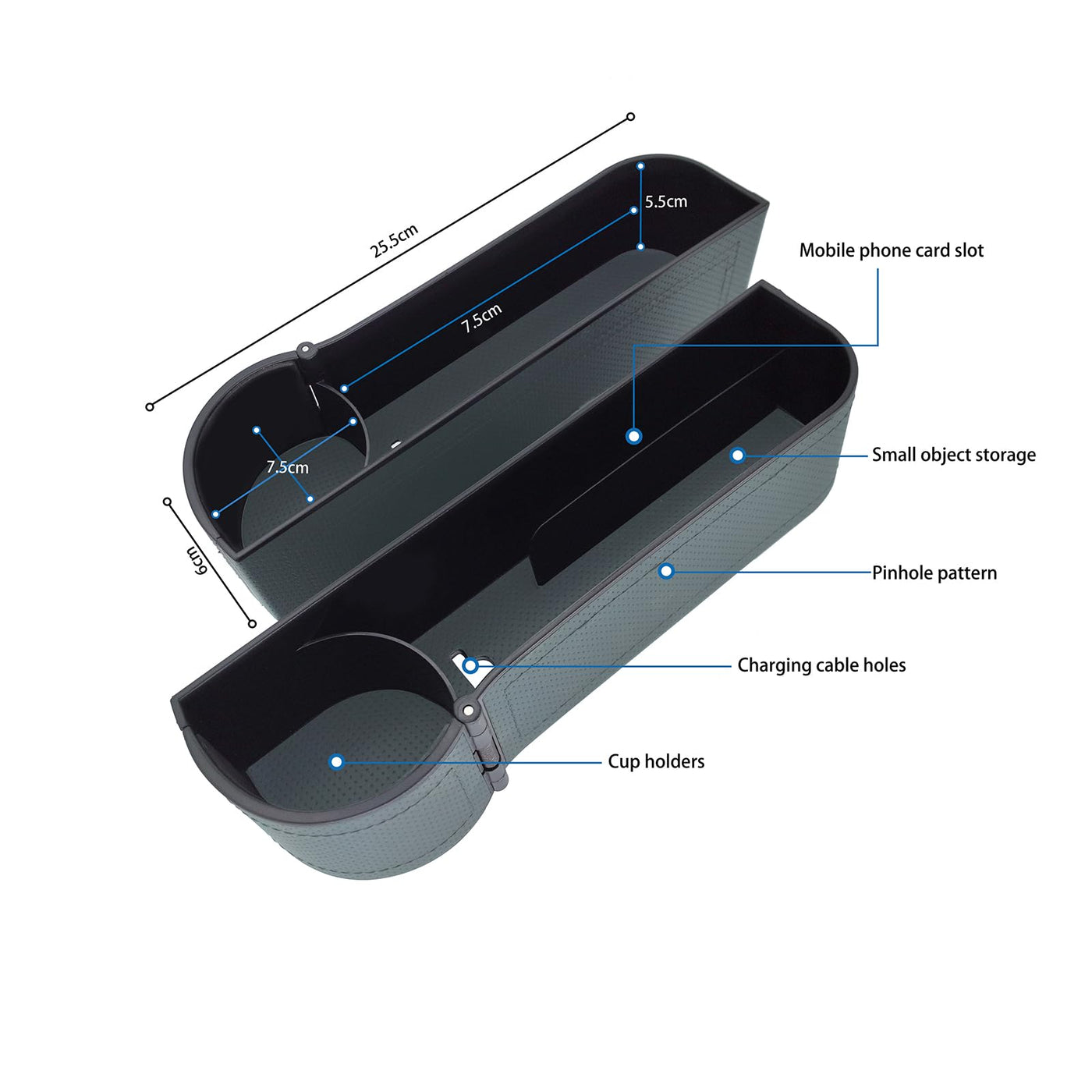 BAILISI Car seat gap filler organizer, 2 Pack multifunctional car seat organizer, car console side storage box can Holders phone