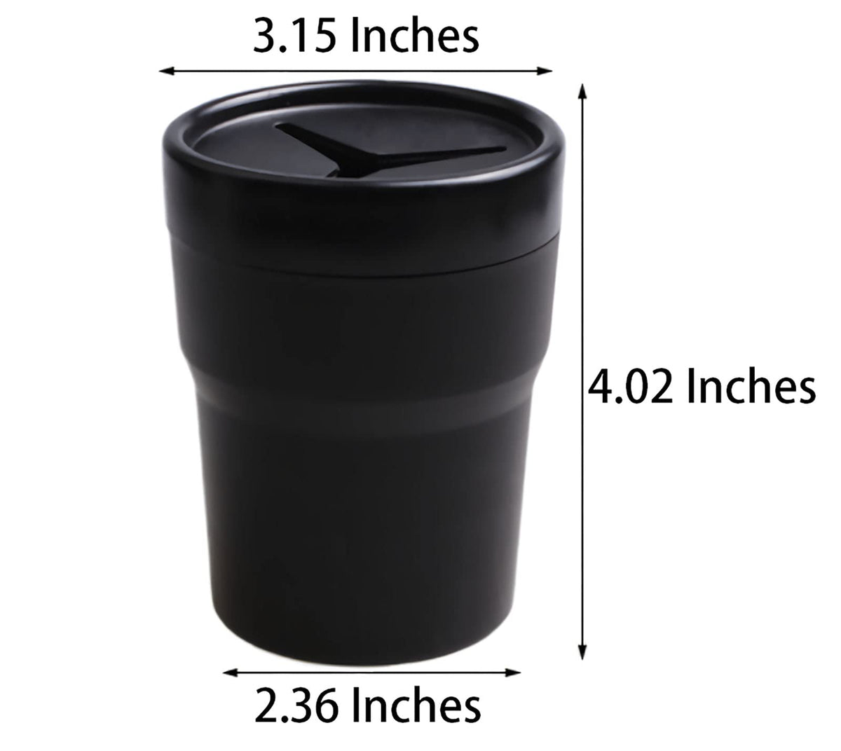 Package: 1 Piece Car change holder organizer Color: black Material: PP+PVC Size: 4.02 3.15 2.36 Inches Net weight: 2.99 ounces Volume: 250 ml The cylinder is small and can be used to place pens, change, trash, sundries, garbage, etc. The upper part of the garbage can be removed, and garbage bags can be added for easy cleaning. Do not place or install in places that may hinder the use of air bags and endanger driving safety. Can be used as an ashtray. The garbage can shall be cleaned in time to avoid secondary pollution in the vehicle. For safety, please check whether the product is loose before driving, if so, please be sure to fix it, so as to avoid danger during driving.