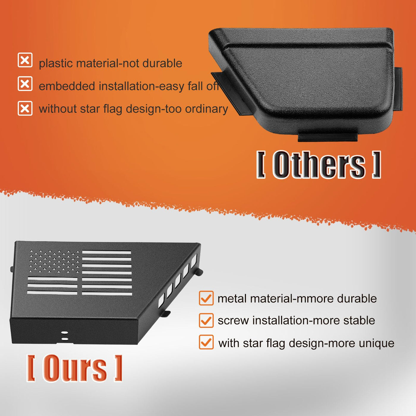 Q: What material are the CALBEAU Front Door Pockets made of?A: The CALBEAU Front Door Pockets are made of high-quality metal. The surface is carbonized to provide a smooth finish, making it sturdier compared to traditional plastic storage options.
