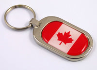 Q: What is the size of the Canada Flag Key Chain?A: The Canada Flag Key Chain measures 3 inches in length with a 1.25-inch domed insert.