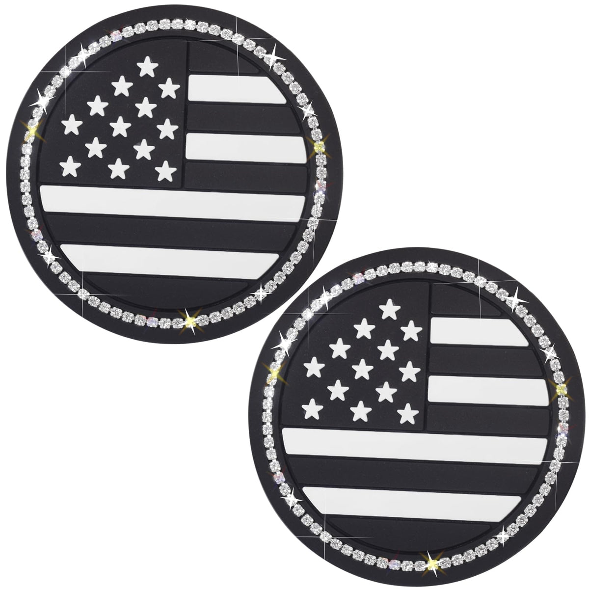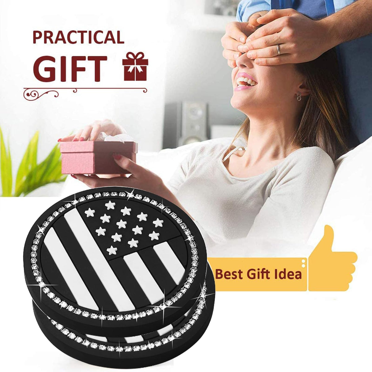 Car Cup Holder Coasters,Bling American Flag Us Flag Insert Car Cup Coaster,2.75 Inch Anti Slip Drink Mat,Vehicle Crystal Rhinest