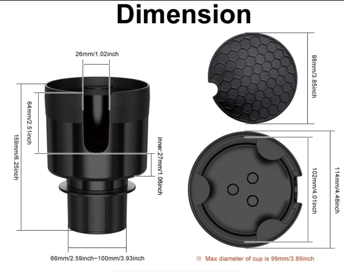 Upgrade your car's cup holder game with the Smart Kup Car Cup Holder Expander, the ultimate solution for holding your favorite beverages securely on the road. Engineered for compatibility, this cup holder adapter fits popular brands like Hydroflask (32/40 Oz), Nalgene (30/32/38/40 oz) , Yeti (20/26/36 oz Ramblers), Owala (19/24/25/32/40 oz) and more, accommodating bottles and mugs from 3.4 to 3.8 inches in diameter. Say goodbye to shallow cup holder issues as our expander features a tapered narrow base, ensuring a snug fit that eliminates rolling around during your drive. Crafted with durability in mind, the cup holder is constructed from impact and abrasion-resistant ABS plastic. The 3-inch upper cup is designed to stay in place during turns and abrupt stops, providing a secure hold for your flask, unlike other holders with a 2-inch upper cup. With a U-shape cutout, our cup expander accommodates coffee cups or travel mugs with external handles, making it versatile for all your beverage needs on the road. Upgrade your journey with Smart Kup - where compatibility, stability, and style meet.