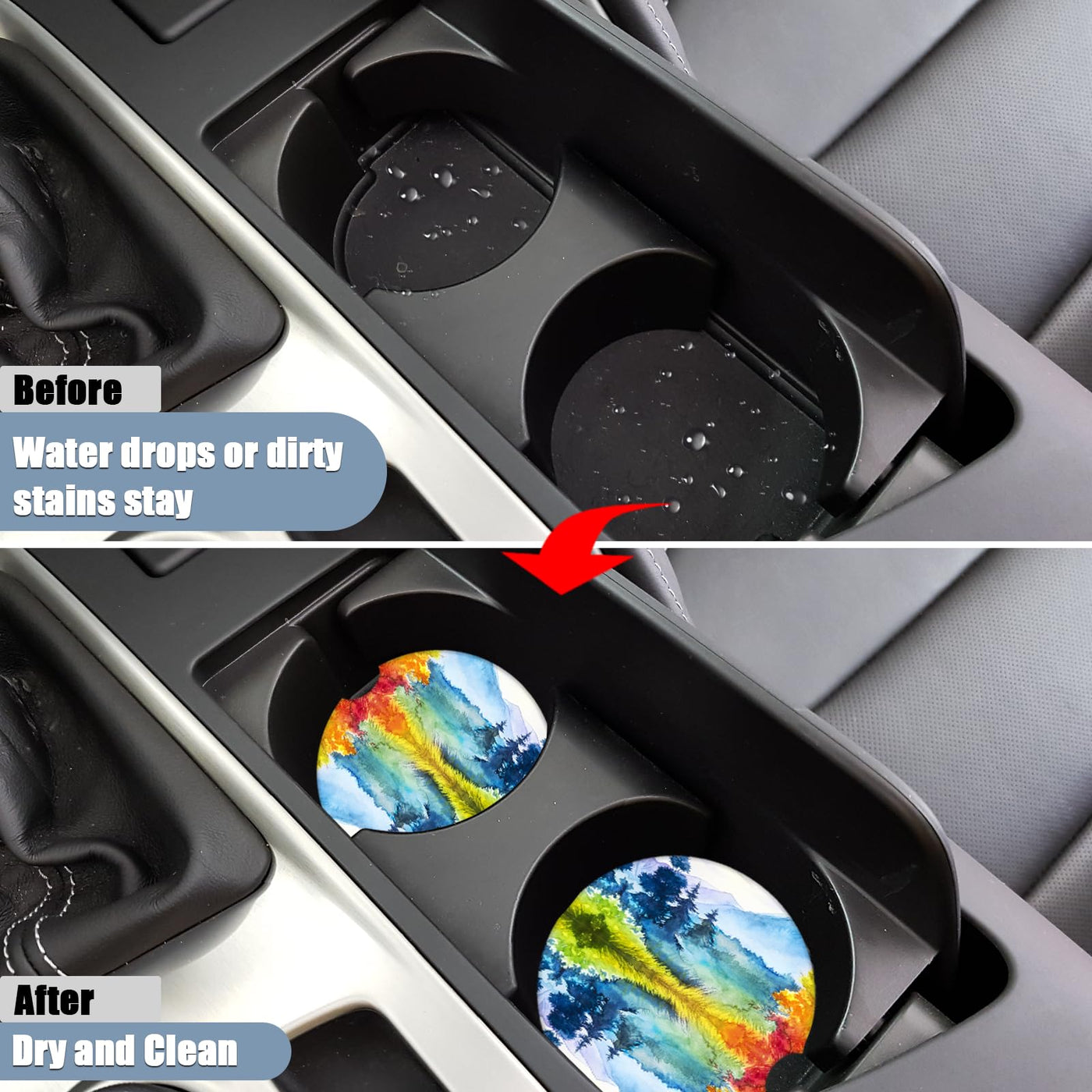 Car Cup Holders Coasters - Autumn Mountains Scenery Sunset Absorbent Ceramic Coaster, Drink Cup Holder Coasters, Auto Interior A