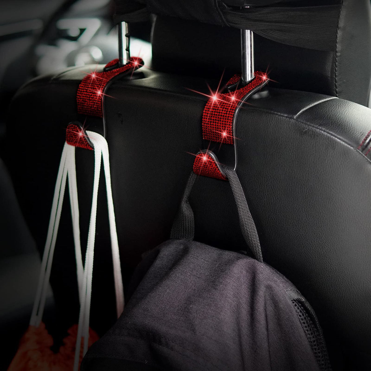 Car Purse Hook Bling Car Headrest Hook For Women Girls, 4 Packs Auto Back Seat Hangers Rear Headrest Hooks For Purse, Bag, Handb