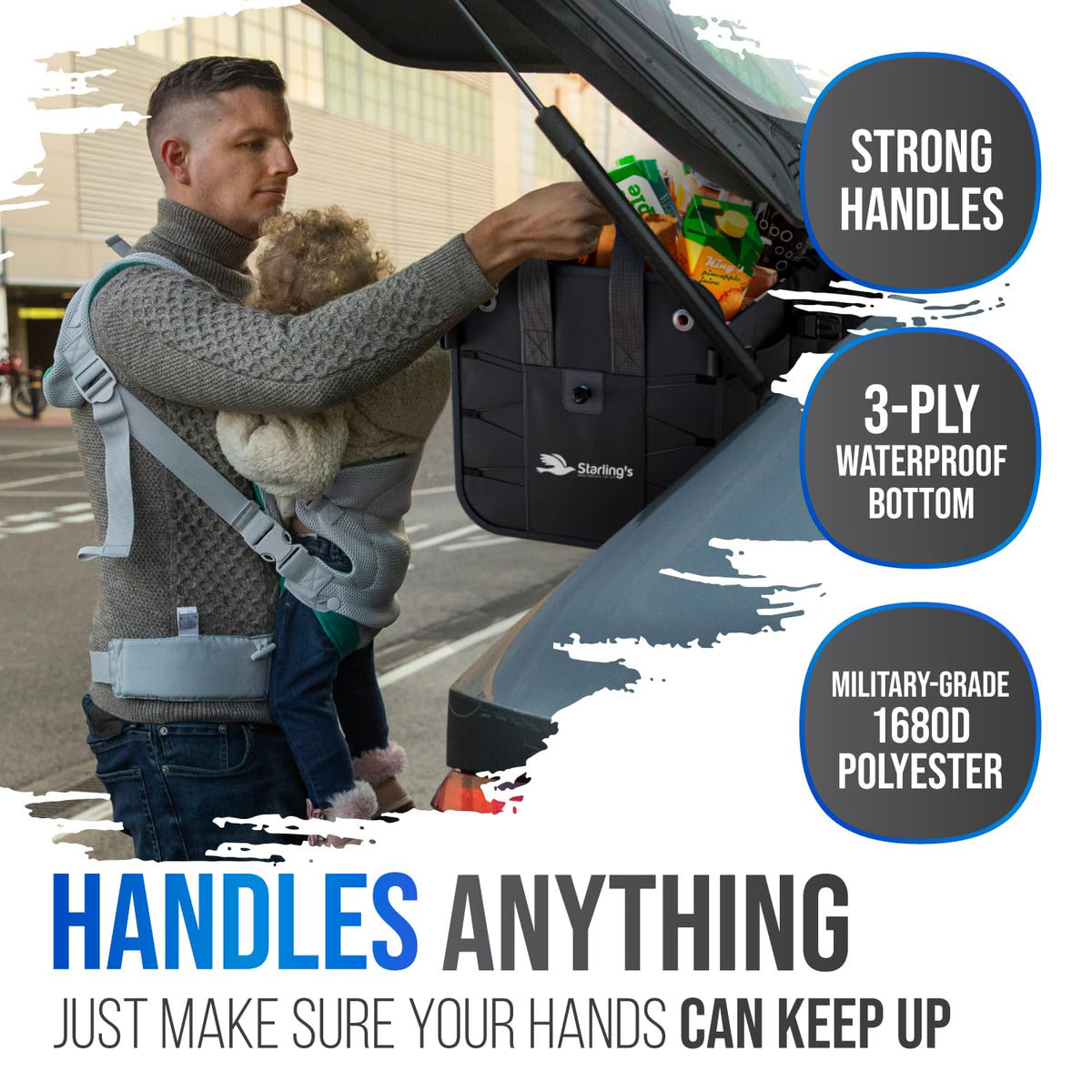 Simply The Solution To Clutter And Mess In Your Trunk Rear Or Backseat The Starling'S Cargo Storage Container Expands Up To 2 Feet Long With Plenty Of Compartments To Put Your Car Tools And Equipment, Groceries, Grocery Bag, Emergency Tools, Cleaning Supplies, Household Belongings, Etc. Cargo Organizer Tote, In Car Storage, Truck Bed Storage. Ideal For Suv, Truck, Auto, Jeep And Practically Any Vehicle Durable & Strong Construction - The Highest Quality That You Deserve Starling'S Car Organizer Made Of Strong Durable 1680D Oxford Polyester With Extra Stitching And A Solid 3-Layer Waterproof Nonslip Bottom, This Trunk Carrier Will Last A Long Time With Repeated Use. Its Dividers Have Super Strong Polyester - That Will Not Bend Or Collapse Easily Due To Added Weight. With Its Innovative Design, The Organizer Stays Firm And Sturdy Also Without Any Cargo In It Easy Use And Care - Long Lasting Value There Is No Way To Describe How Easy It Is To Install Our Collapsible Cargo Storage Bag. Do You Want To Take It Out For Shopping? Fold This Lightweight, Portable Organizer In One Move And Carry It Anywhere You Go. Do You Want To Freshen It Up? You Can Simply Wipe Its Waterproof Fabric With A Wet Cloth Customizable Cargo Compartments - With 2 Divided Sections, You Can Use One Or Expand To Use Both With 2 Divided Sections, You Can Use One Or Expand To Use Both. It Has 1 Removable Divider So One Side Can Have 2 Compartments To Organize Items While The Other Is A Large Open Area. Non-Skid Waterproof Bottom Floor Designed To Keep Your Cargo From Sliding. Outside There Are 10 Pockets, 2 Strong Handles That Will Never Break. This Car Storage Organizer Has A Collapsible Design That Folds Flat To Fit In Any Vehicle Come In 3 Colors - Black, Blue & Pink Starling'S Car Organizer Is Made Of Strong Durable 1680D Oxford Polyester With Extra Stitching And A Solid 3-Layer Waterproof Nonslip Bottom, This Trunk Carrier Will Last A Long Time With Repeated Use
