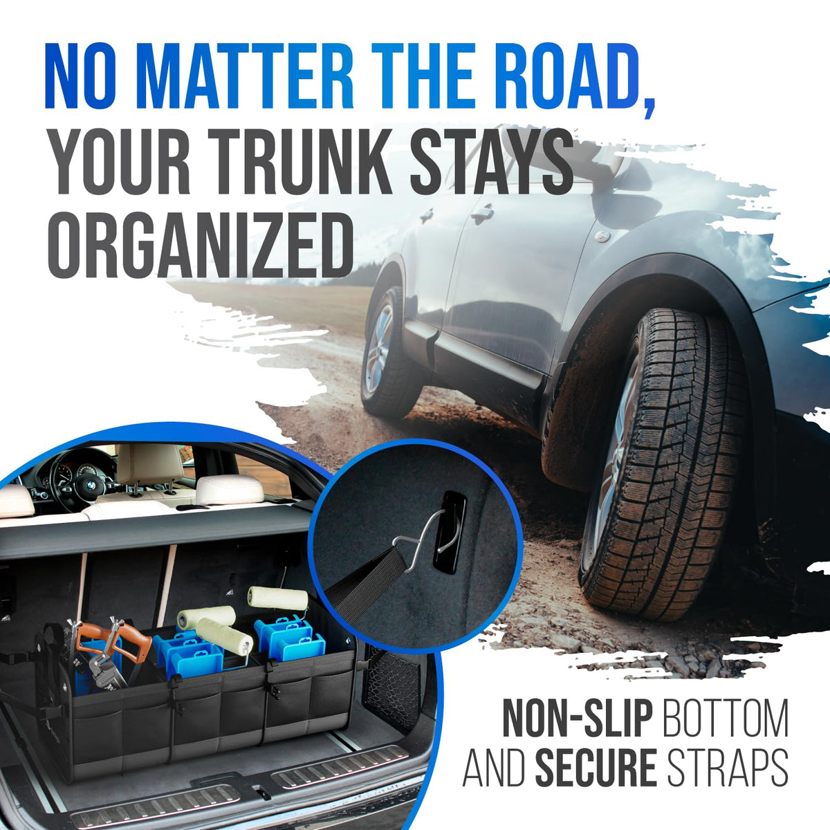 Car Trunk Organizer - Large Collapsible Storage Box With Adjustable Compartments - Heavy-Duty Cargo Organizer For Suv, Truck & C