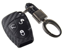 Carbon Silicone Smart Key Fob Cover with Keychain for Mercedes E C R CL GL SL CLK SLK