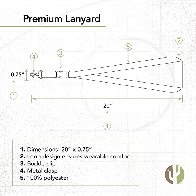 Q: What is the length and width of the lanyard?A: The lanyard measures 0.75 inches wide and 1 foot long from end to end, designed to display the printed design properly when worn around your neck.