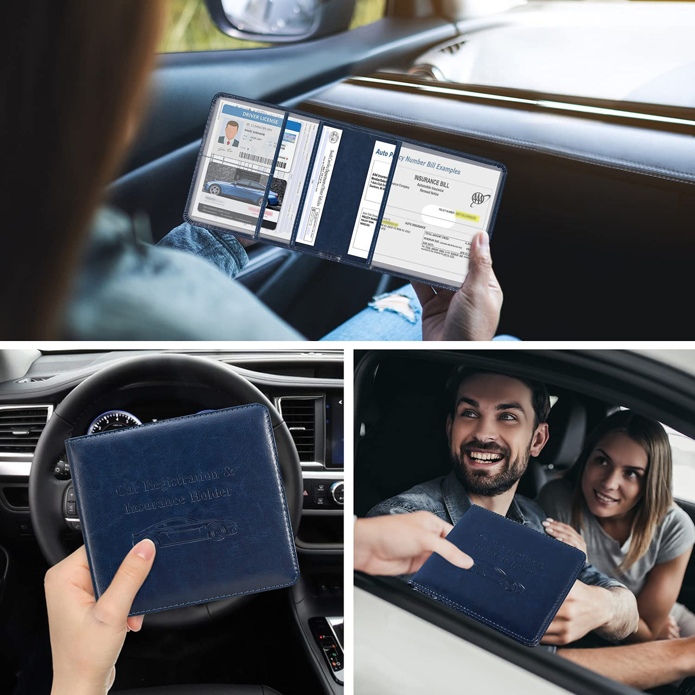 MUST HAVE FOR CAR OWNEROur document case is a must-have for all car enthusiasts.We offer our car document organizer in multiple colors, so you can design the perfect holder to match your personality and style!Crafted with top-quality materials, car insurance and registration holder is one accessory that everyone will notice.This car registration holder for glove box is made from high-quality ECO-friendly PU leather.Auto insurance and registration card holder has a luxurious lookThe car glove box organizer has a clear window so you can easily see all your documents when opening it up! CLEVER DESIGNThis glove box organizer for car is a great way to keep all of your important documents organized.Card holder box has one large pocket for holding car insurance card, two pockets that can hold vehicle registrations cards, three small ones you could use for driver's licenses or other valuable cards.This trailer registration holder is precisely made for drivers who want an accessory that fits all of their needed documents.Our car compartment organizer is just the right size to fit in your car. The dimensions are 5.75 x 5.12 x 0.39 inches, when opened it measures, you can easily hold it with one hand! THOUGHTFUL GIFTThis practical leather document holder is a thoughtful gift that your loved ones will appreciate and use for years!Give the car owner in your life a registration and insurance holder so they can keep it nearby at all times.The stylish essential information organizer comes complete with slots, pockets, and compartments which make organization easy!Make sure to stock up on this eye-catching holder for car registration while supplies last! ? Enjoy our elegant glove box document holder now!
