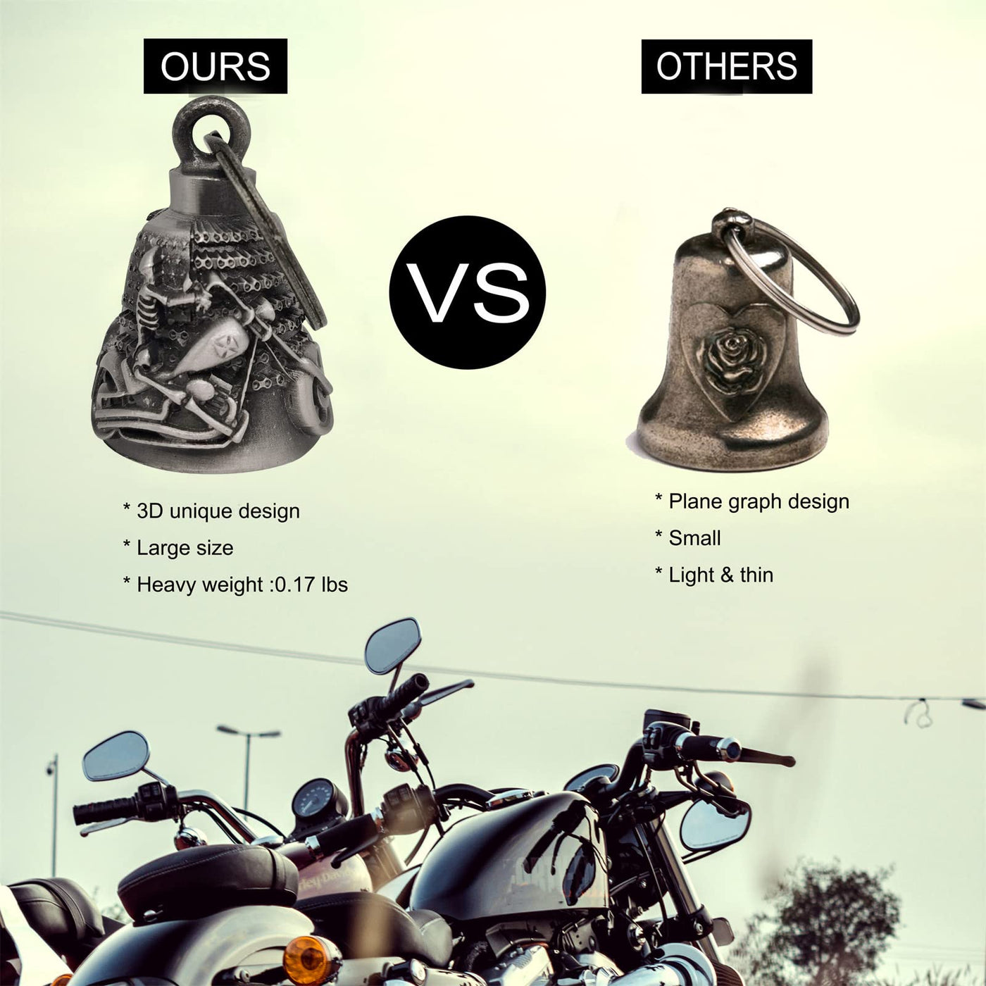 Dream Apparel Motorcycle ride bell for bikers,heavy spirit bells accessory and key chain for luck (DBL14-L Chopper)