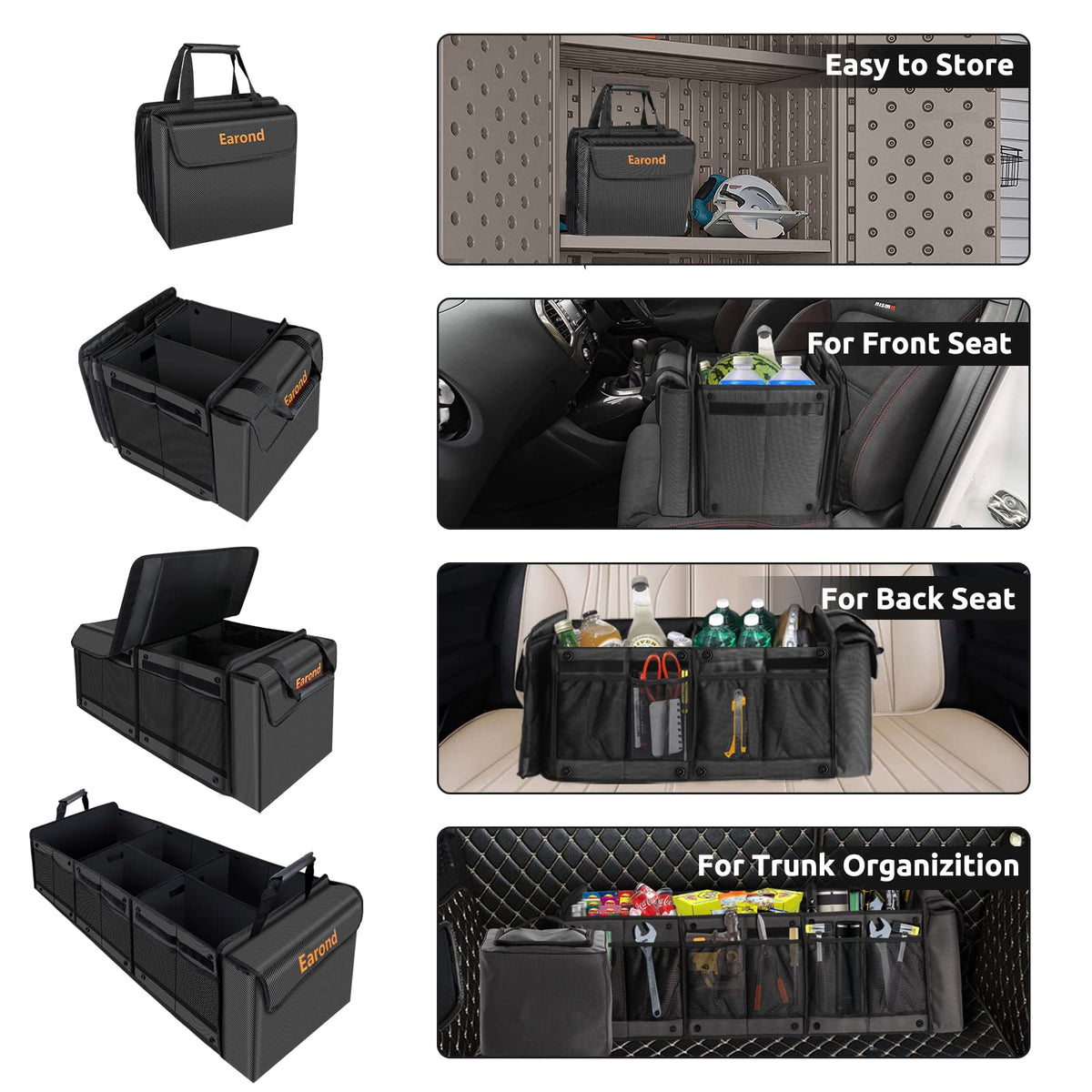 Q: Can this trunk organizer fit in compact cars?A: Yes, the EAROND Car Trunk Organizer is designed to be compatible with various vehicle sizes, including compact cars, SUVs, and trucks, ensuring versatility in use.