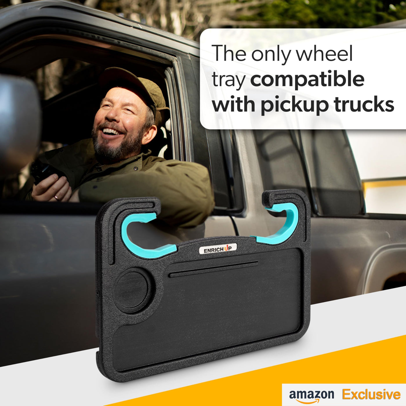 Enrich Up 2-In-1 Car Steering Wheel Tray - Steering Wheel Desk For Laptop, Multipurpose Car Table For Eating & Work, Adjustable