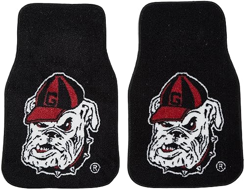 5875 NCAA Team: Georgia - Bulldog Logo on Black Features: -100% Nylon face with non-skid vinyl backing. -Universal fit makes it ideal for cars, trucks, SUVs, and RVs. -Authentic NCAA team league. -Made in the USA. Product Type: -Car Mat. Dimensions: Overall Height - Top to Bottom: -27 Inches. Overall Width - Side to Side: -18 Inches. Overall Product Weight: -4 Pounds.