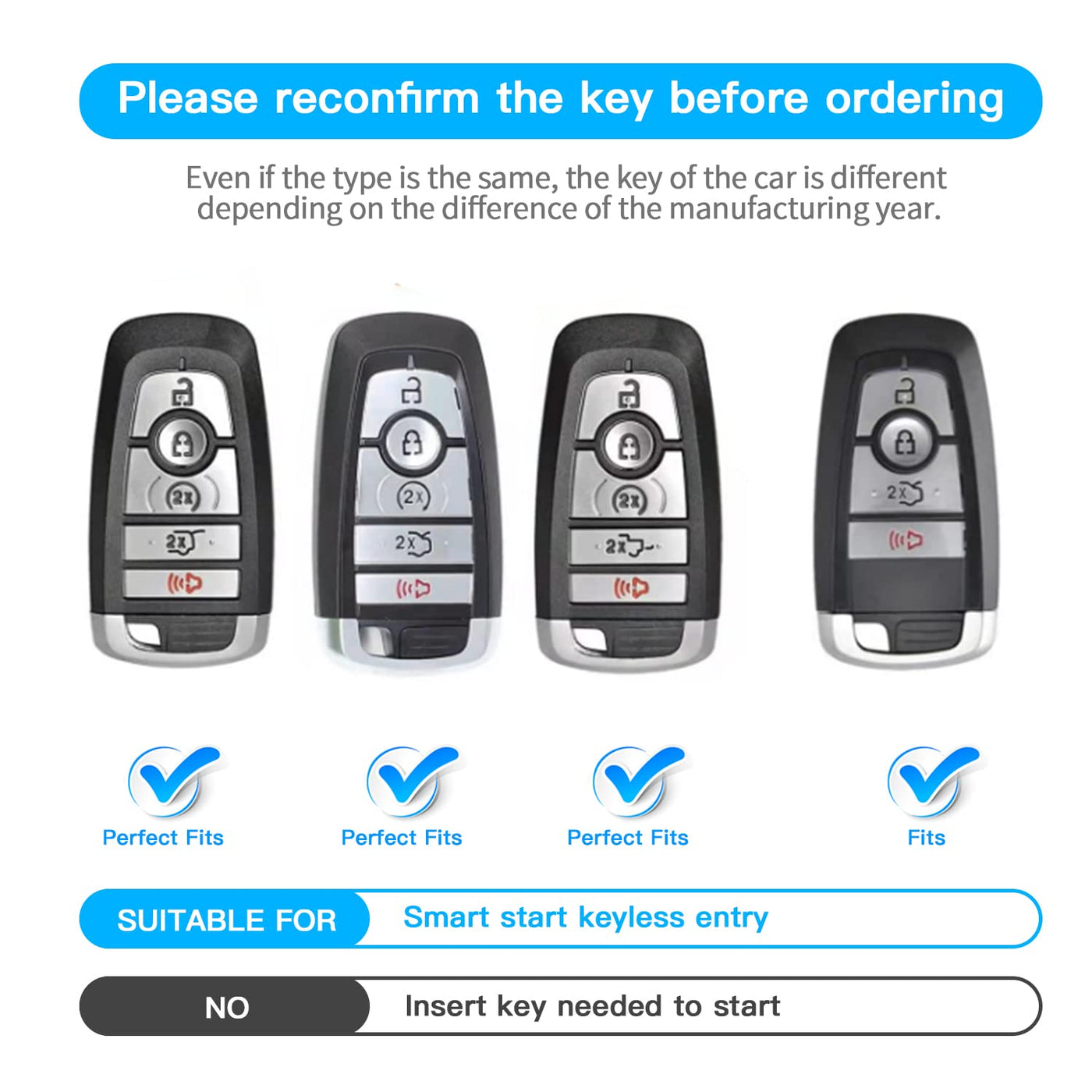 Q: Is this key fob cover compatible with my Ford model?A: Yes, this key fob cover is compatible with various Ford models including the Explorer, Fusion, Escape, Edge, Expedition, F150, F250, F350, F450, F550, Maverick, and Mustang. However, please double-check your key fob design with the pictures provided to ensure compatibility, as the same model may have different fob designs based on the manufacturing year.
