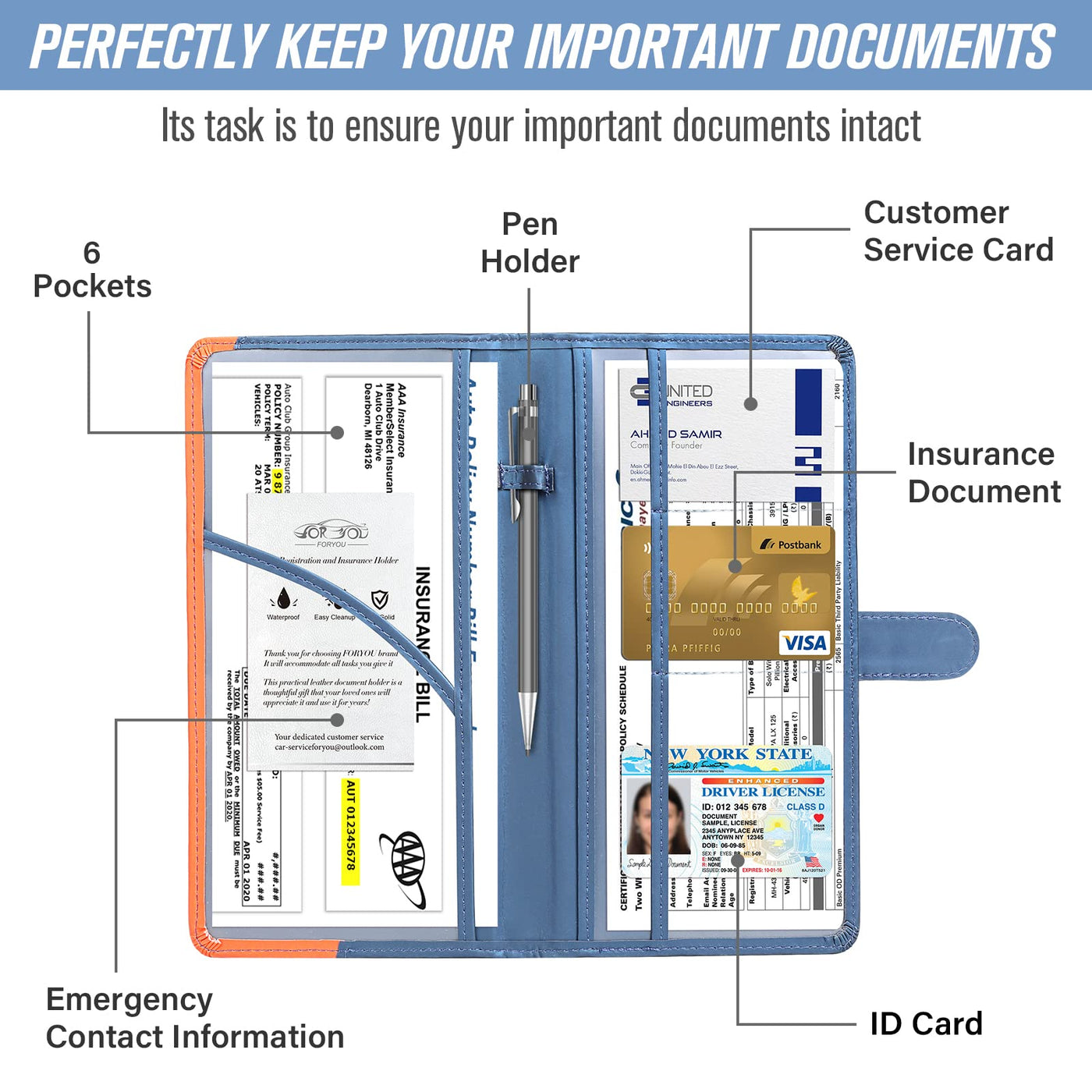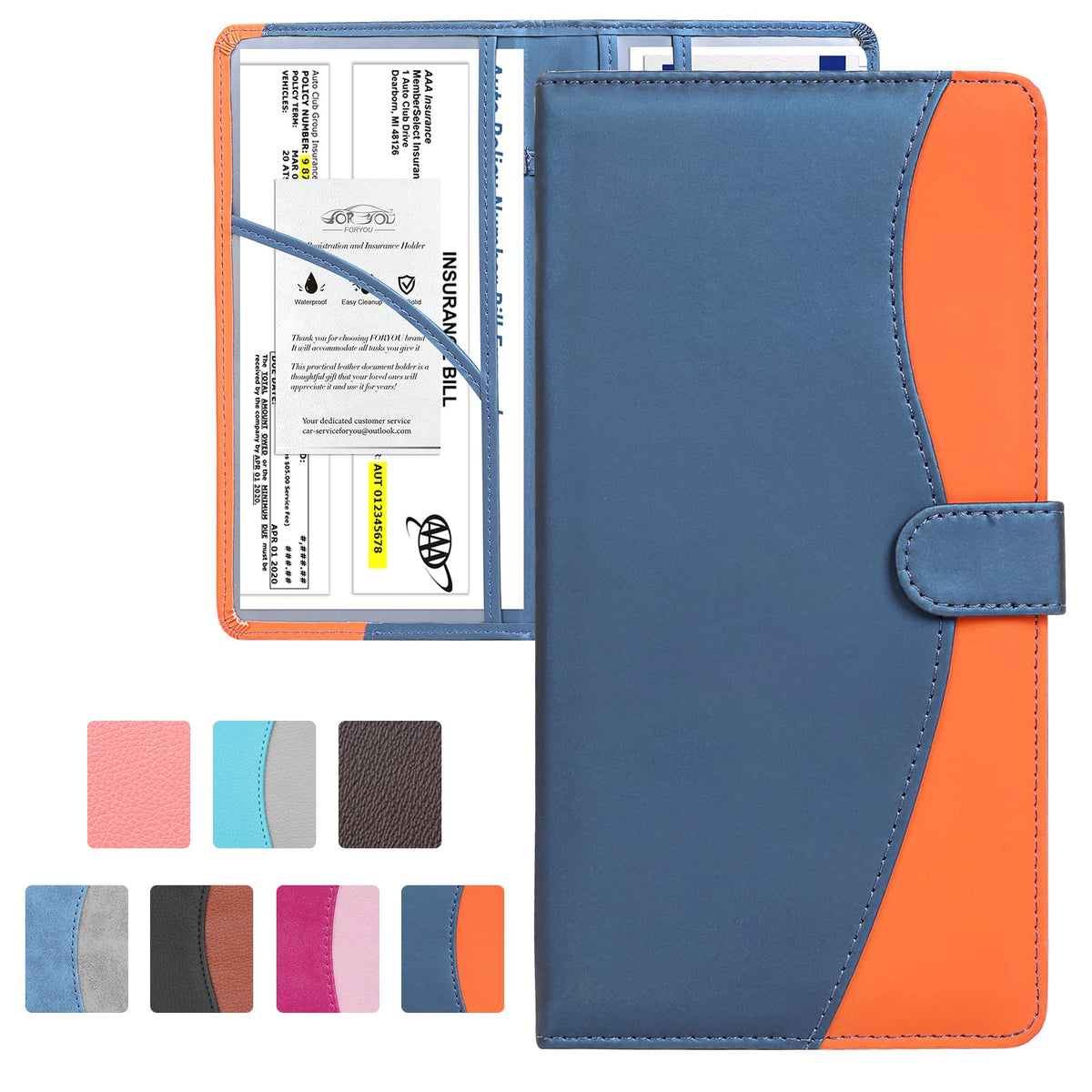 FORYOU Car Registration and Insurance Holder Car Document Holder Registration and Insurance Card Holder for Cards, Driver License & other Essential Documents(Blue Orange)